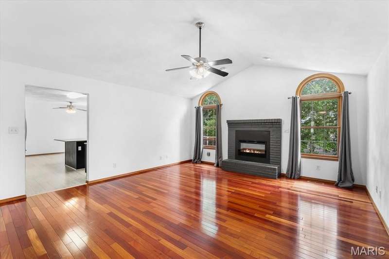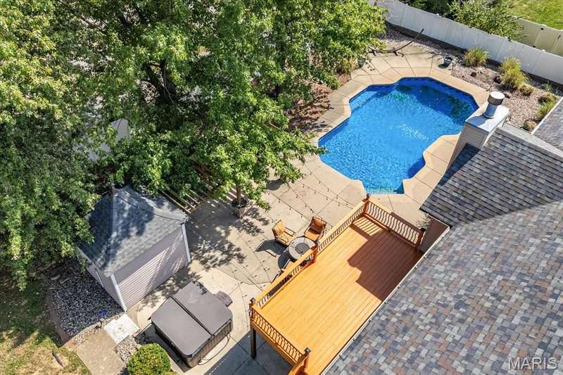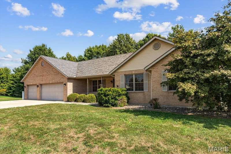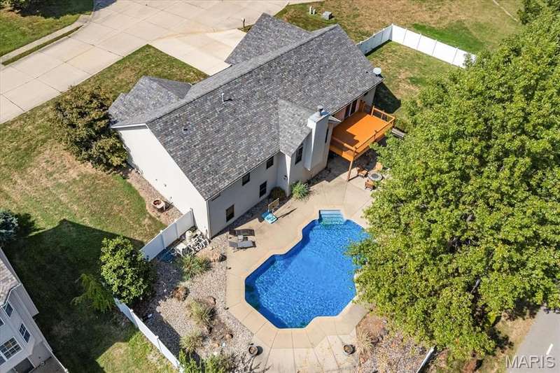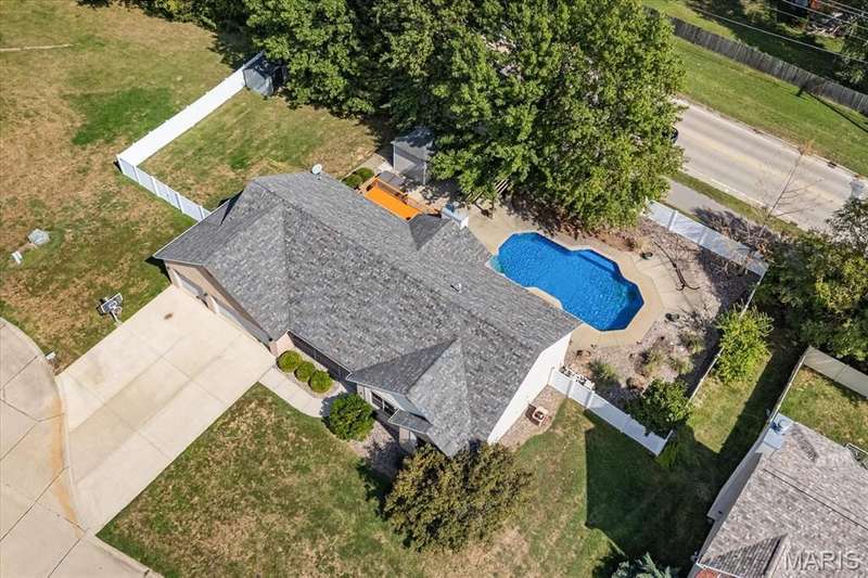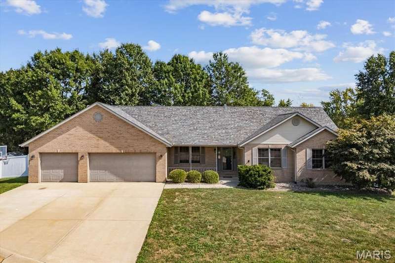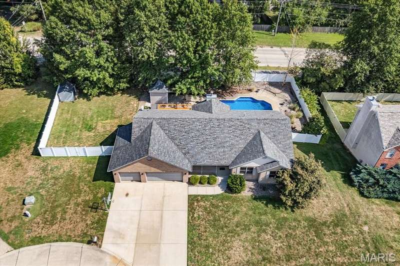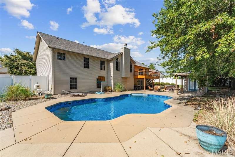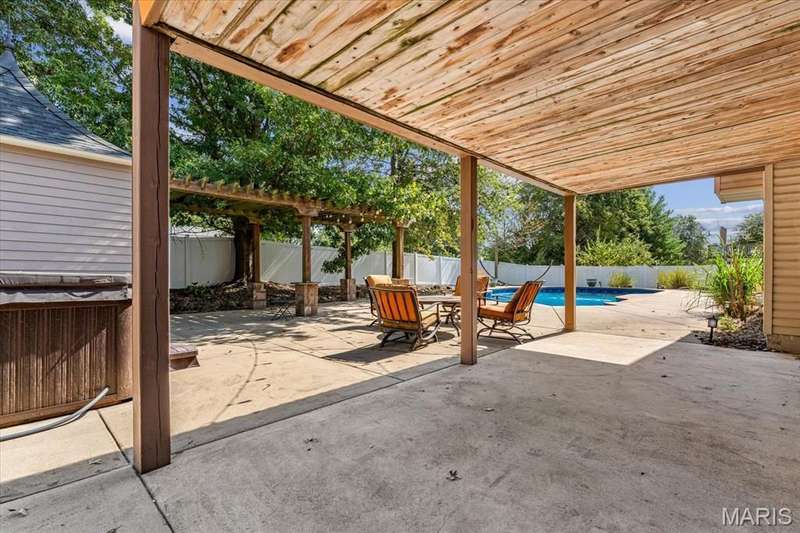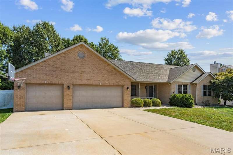 Fantastic opportunity in the sought-after Wolf Branch School District! This 4 bedroom, 4 bathroom ranch with a finished walkout basement and heated in-ground pool is sure to impress. The welcoming foyer opens to a formal dining room and vaulted living room with fireplace. A spacious eat-in kitchen offers ample cabinet and counter space, a full stainless appliance package, and access to the freshly painted deck overlooking the pool area. The vaulted primary suite features a walk-in closet and a private 5-piece bath. Two additional bedrooms share a full bath, while a half bath and laundry room complete the main level. The walkout lower level is perfect for entertaining with a custom wet bar with beer taps that opens to the family room with a second fireplace. You'll also find a gym or office space, media room, an additional bedroom, full bath, and two large storage rooms. The outdoor living space is a showstopper-featuring a heated in-ground pool, expansive patio with covered and uncovered areas, a pergola, pool shed, and still plenty of yard space with a vinyl privacy fence. This home truly checks all the boxes!