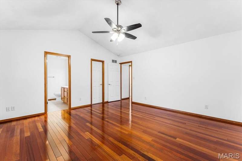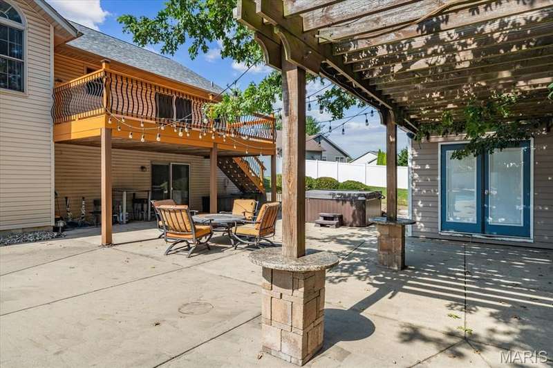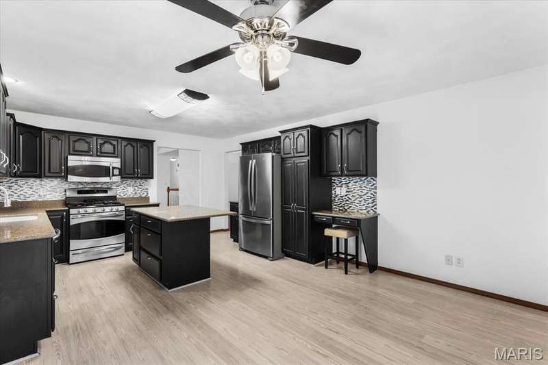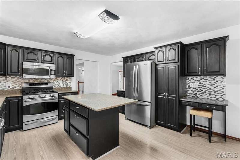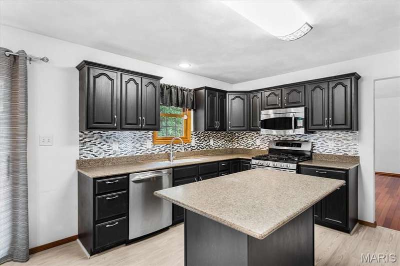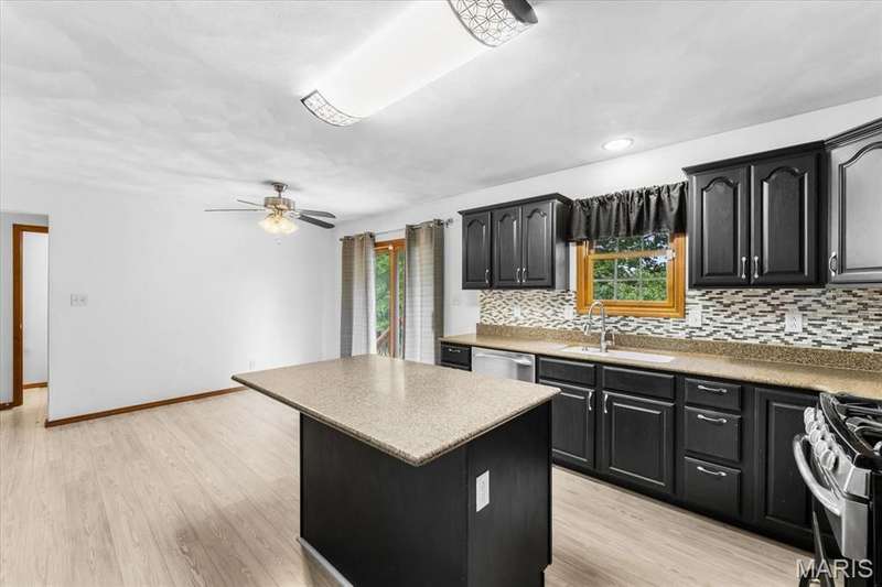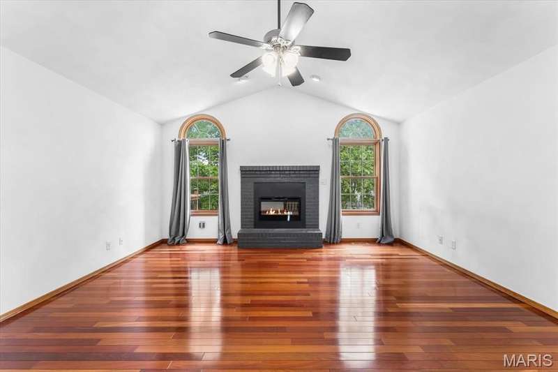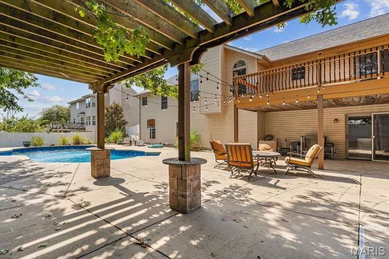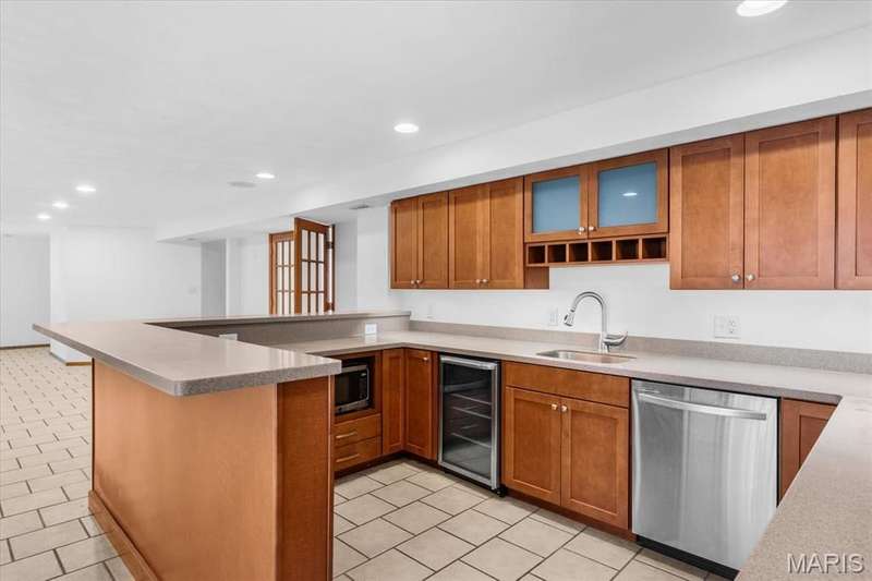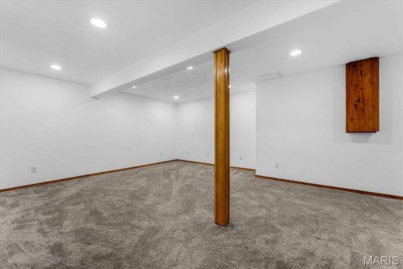 Fantastic opportunity in the sought-after Wolf Branch School District! This 4 bedroom, 4 bathroom ranch with a finished walkout basement and heated in-ground pool is sure to impress. The welcoming foyer opens to a formal dining room and vaulted living room with fireplace. A spacious eat-in kitchen offers ample cabinet and counter space, a full stainless appliance package, and access to the freshly painted deck overlooking the pool area. The vaulted primary suite features a walk-in closet and a private 5-piece bath. Two additional bedrooms share a full bath, while a half bath and laundry room complete the main level. The walkout lower level is perfect for entertaining with a custom wet bar with beer taps that opens to the family room with a second fireplace. You'll also find a gym or office space, media room, an additional bedroom, full bath, and two large storage rooms. The outdoor living space is a showstopper-featuring a heated in-ground pool, expansive patio with covered and uncovered areas, a pergola, pool shed, and still plenty of yard space with a vinyl privacy fence. This home truly checks all the boxes!