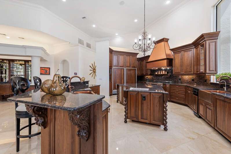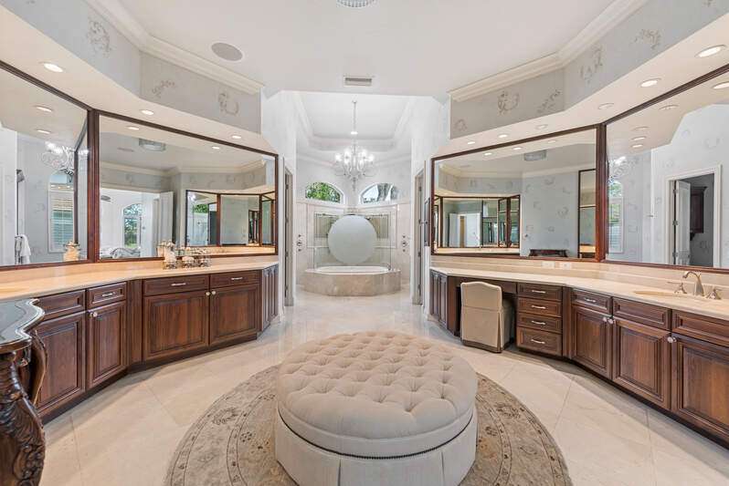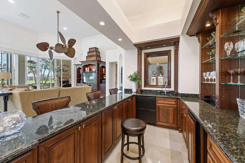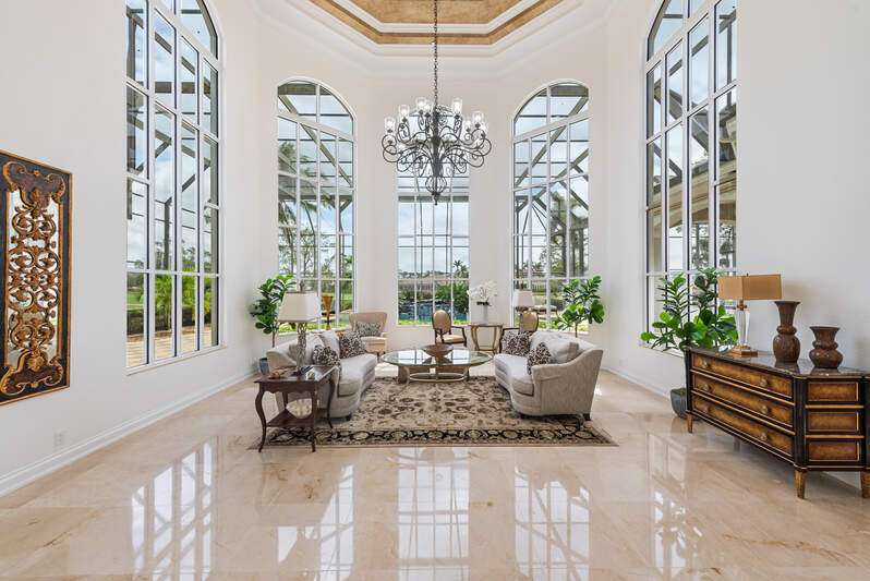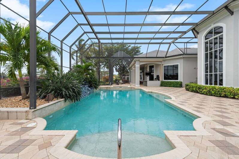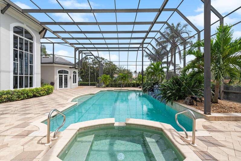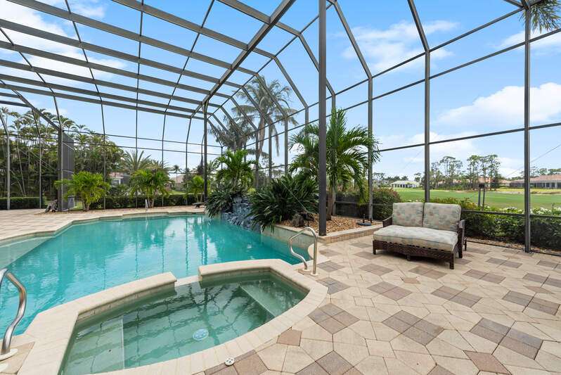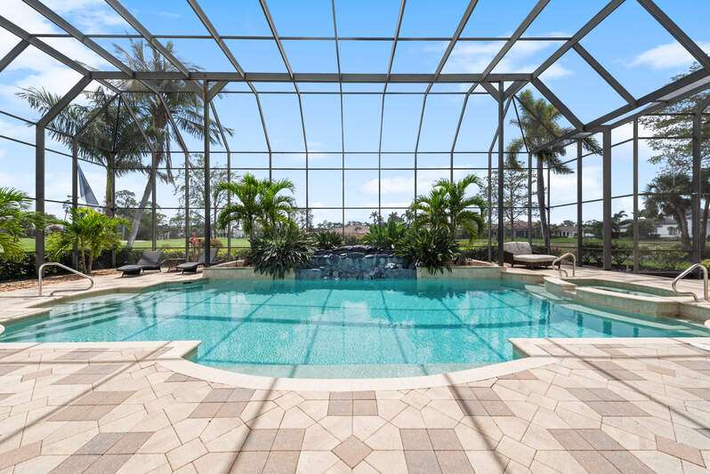 Welcome to the opportunity of a lifetime-your dream home is now waiting for you, but it won't last long! Step inside and be immediately captivated by the grand entrance, where dual staircases greet you, exuding luxury and innovation. The soaring 22-foot windows flood the space with natural light, highlighting the expansive, tastefully designed living areas that are as beautiful as they are funtional. As you explore this remarkable home, you're embraced by stunning views of the pool, spa, and outdoor living space-perfect for relaxation or entertaining. Recently updated to provide long-term financial benefits, this home is equipped with cutting-edge solar panels and a Tesla Powerwall for sustainable, backup energy. The home has been thoughtfully enhanced with fresh paint, electrical upgrades, and smart home technology to keep you connected and comfortable. Set on nearly an acre of land with breathtaking views of Quail West Golf and Country Club's 15th hole of the Preserve course, this sprawling 13,000+ square foot estate offers an unrivaled living experience at an exceptional price. The main house features four generously-sized en-suite bedrooms, and the guest cabana offers its own private suite with serene views for ultimate peace and privacy. The heart of the home, the kitchen, is an entertainer's dream, complete with built-in cabinetry and a massive island, all just steps away from the great room. Whether you're hosting a gathering or enjoying a quiet family evening, this space is designed for both elegance and function. Don't miss out on this rare opportunity-time is running out. Your new home is just a call away. Come see it for yourself and make this dream a reality today!