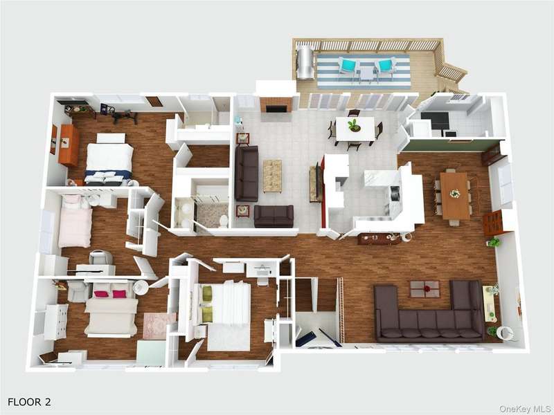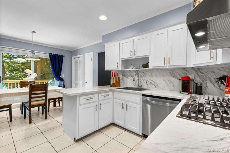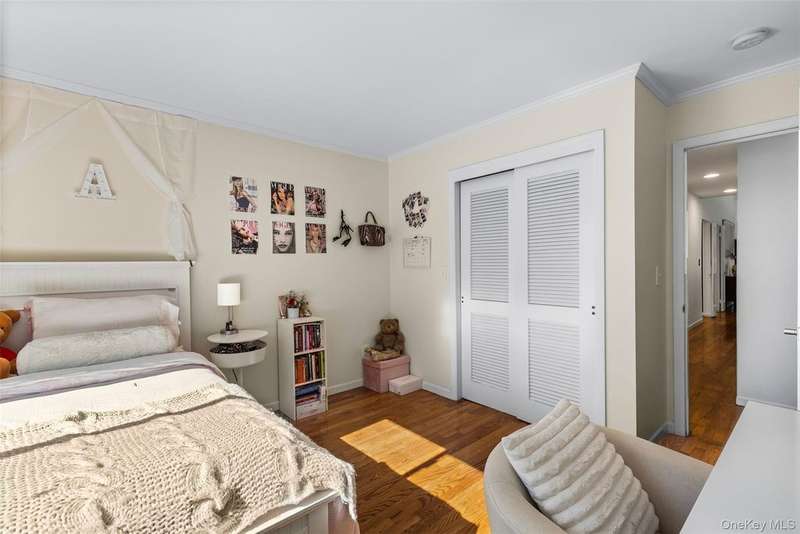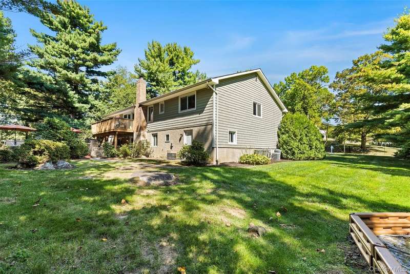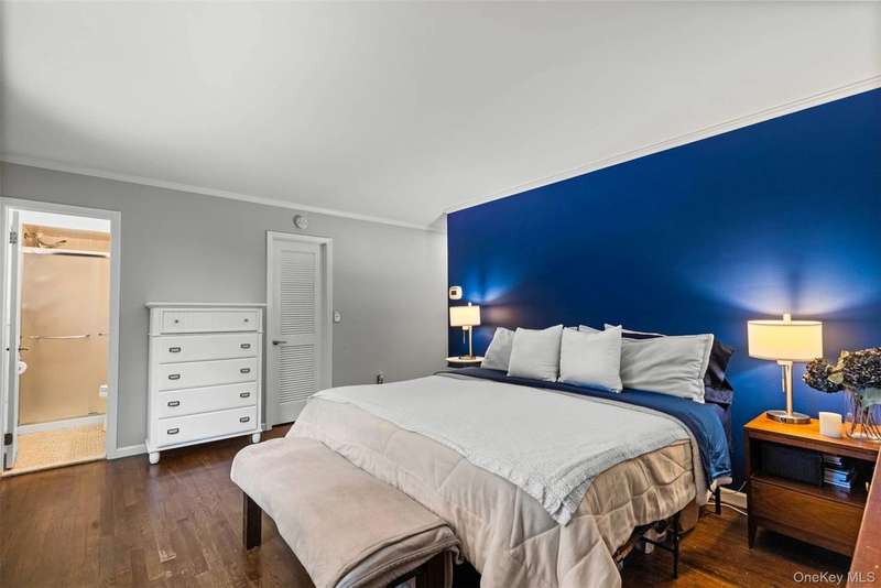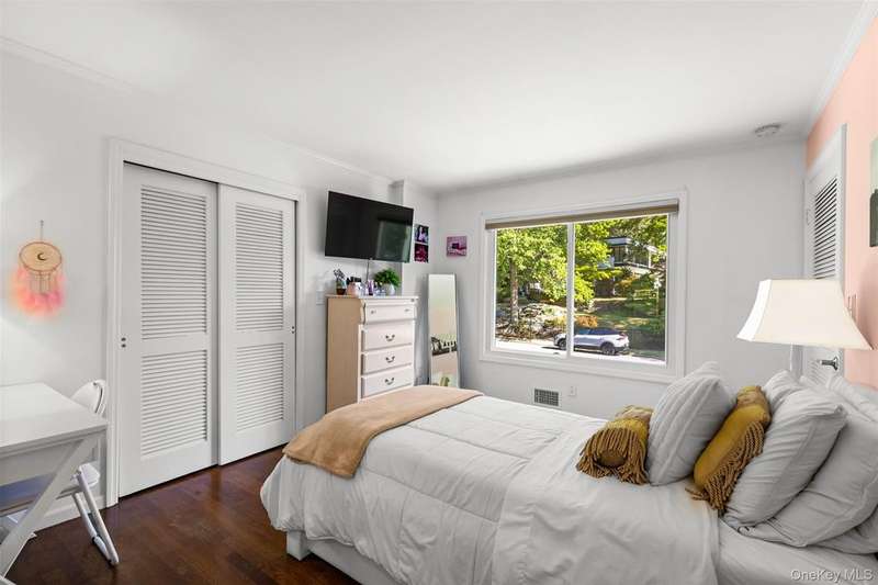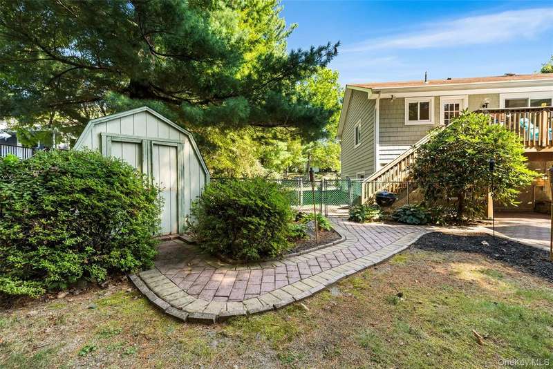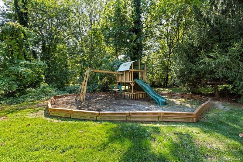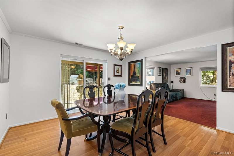 Gracefully nestled on nearly half an acre of lush, landscaped grounds, this distinguished light brick Raised Ranch exudes timeless appeal in the coveted, nationally recognized Edgemont School District. A grand first impression begins at the striking emerald green double doors, featuring raised panel detailing, an eye-catching entrance that hints at the sophistication within. Natural light pours into the expansive living room through near floor-to-ceiling windows, creating an airy, uplifting space that's perfect for both everyday comfort and stylish entertaining. Gleaming hardwood floors flow throughout, adding warmth and richness. Just steps away, the formal dining area sits beneath a dramatic vaulted ceiling with an elegant chandelier, ideal for hosting memorable dinners and celebrations. The updated kitchen is a true heart of the home, featuring brand-new stainless steel appliances, striking new laminate countertops and backsplash, and a cozy breakfast nook with sliding glass doors that open to the deck, your gateway to morning coffee or dining under the stars. Just off the kitchen, the main-level family room invites you to unwind in a space that's both cozy and refined, complete with a charming wood-burning fireplace, a perfect backdrop for relaxed evenings or weekend gatherings. A full-size laundry room and abundant storage add effortless functionality to this beautifully designed main floor. The serene primary suite is a true retreat, featuring a dramatic navy-blue accent wall that adds a designer touch and creates a calming atmosphere. A spa-inspired ensuite bath makes mornings feel effortless and evenings feel indulgent. Three additional generously sized bedrooms offer flexibility for family, guests, or home office use, and are served by a beautifully appointed hall bath, blending style and practicality. Downstairs, the lower level extends the home's versatility and comfort, offering the perfect setup for extended family, multi-generational living, or long-term guests. This thoughtfully designed space includes a sleek second kitchen with crisp white cabinetry, a bright dining or breakfast area, a spacious family room, a private bedroom, a full hall bath, and its own separate entrance. Direct access to the oversized two-car garage adds convenience, while a dedicated storage area and bath enhance functionality. Step outside and discover a true backyard sanctuary. The expansive, fully paved patio is ideal for effortless entertaining, with room for multiple dining areas, a BBQ station, and even a cozy firepit. A dedicated dog run offers a haven for your four-legged friend, while a separate playground area, garden shed, and sweeping lawn surrounded by mature landscaping create a peaceful and private outdoor escape. Perfectly located near top-rated Edgemont schools, luxury shopping, fine dining, major highways, and Metro-North, this beautifully upgraded home offers the ideal blend of elegance, comfort, and convenience in one of Westchester's most desirable communities.