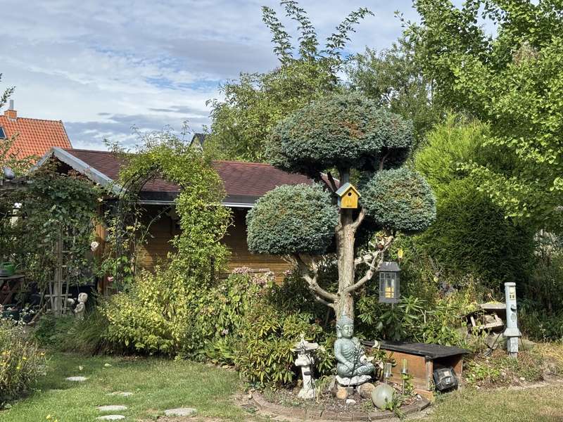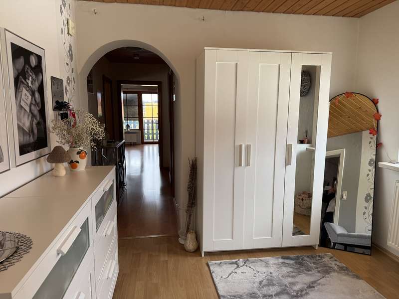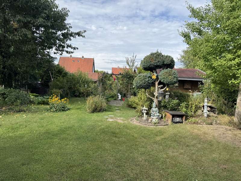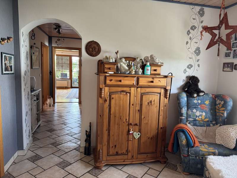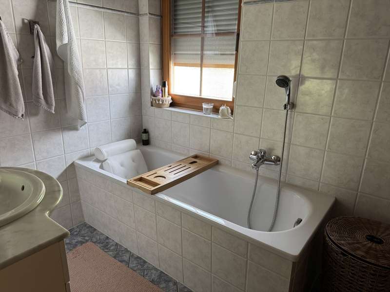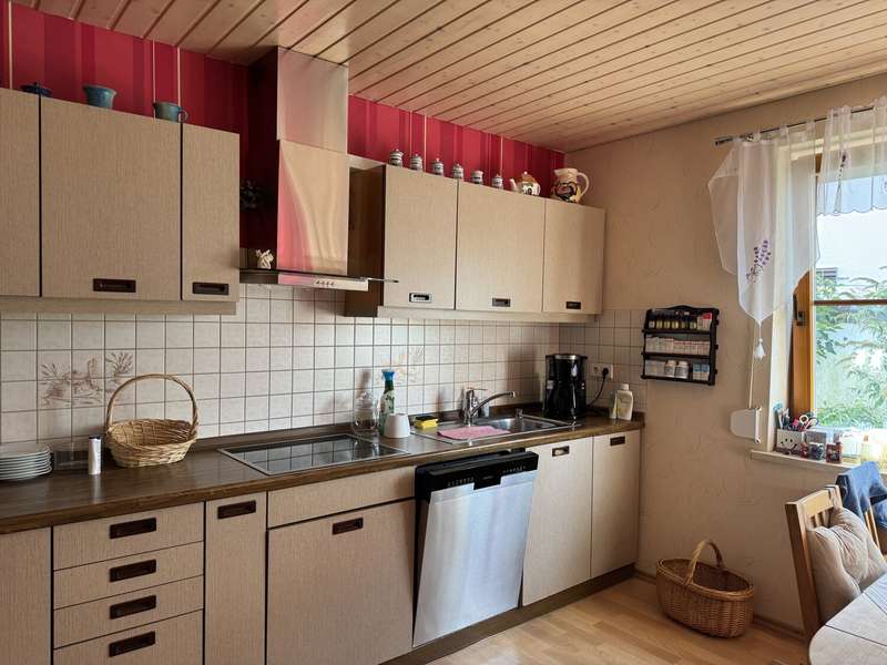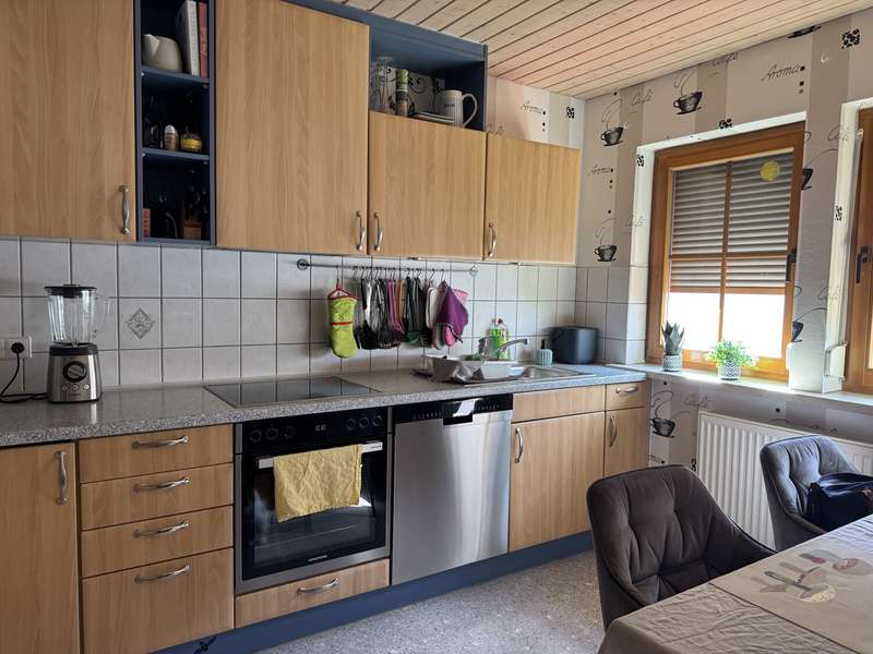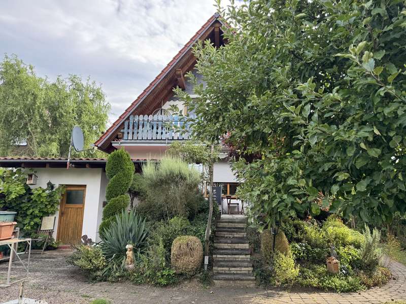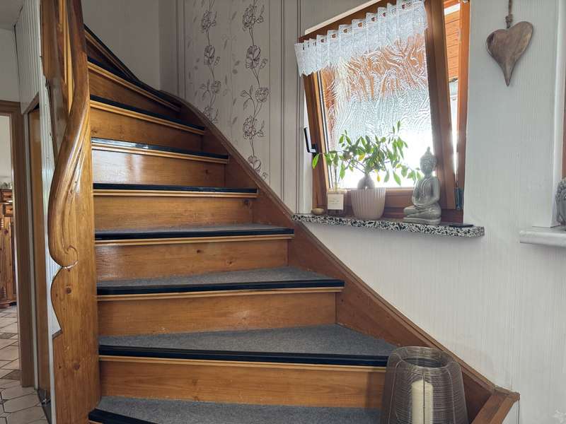 This attractive and very well-maintained property from 1967 is situated on a 691 m² beautifully ingrown plot in a quiet residential area of Badenhauen. In 1998, the property was extended and enlarged to provide approx. 193 m² of living space. The property impresses with its solid construction. A clever and optimally implemented floor plan provides space and quality of life and there is even the possibility of using the house as a two-family and/or multi-generational home. On the first floor there is a porch and entrance hall, kitchen including fitted kitchen, bathroom with shower, two bedrooms and the spacious living and dining area with access to the terrace and the property. The original wooden staircase leads to the upper floor. Here you will find a hallway with lounge area, two bedrooms, kitchen incl. fitted kitchen and dining area, a small storage room, bathroom with shower and bathtub and the large living room with access to the balcony. Some of the rooms on the upper floor have sloping ceilings. The property has a basement. Here you will find the boiler room, washing machine area, storage rooms, a small shower room and a large hobby room with access to the property. When the house and garage were extended in 1998, the roof was also re-roofed and the carport was built. A highlight is the fantastic plot with garden shed. Here the grown-ups will find plenty of space to grow fruit, vegetables and flowers as well as to relax and unwind, while the little ones have plenty of room to play. We look forward to hearing from you and being able to present this gem to you. Poll Finance will be happy to assist you with financing.