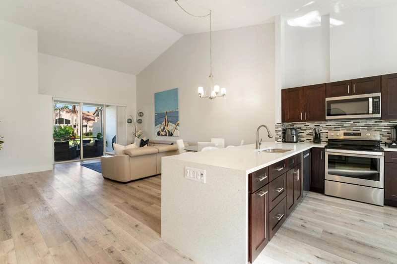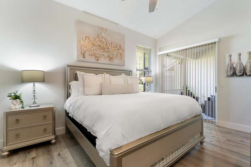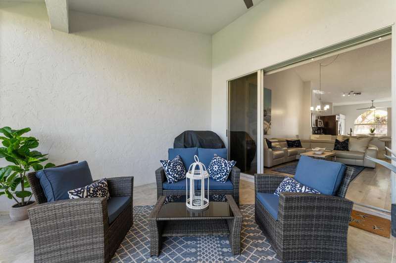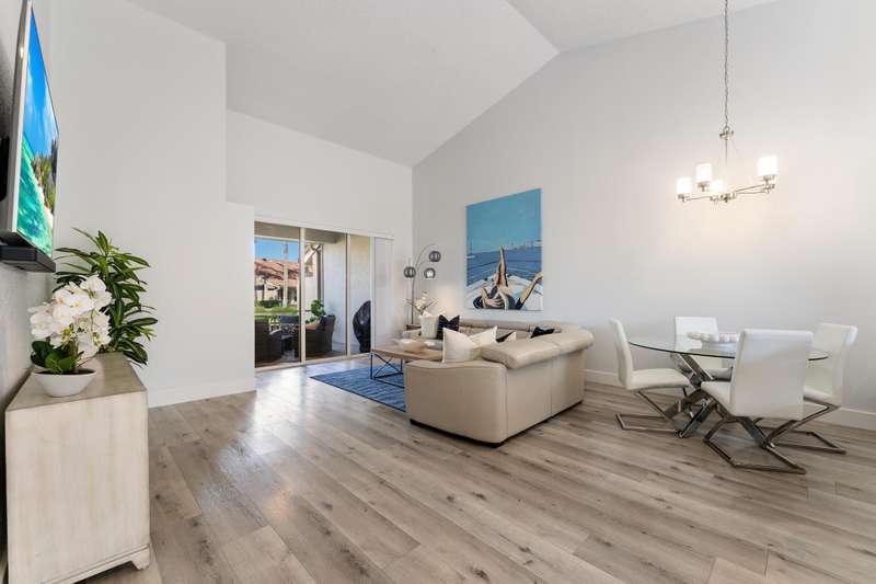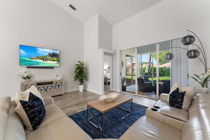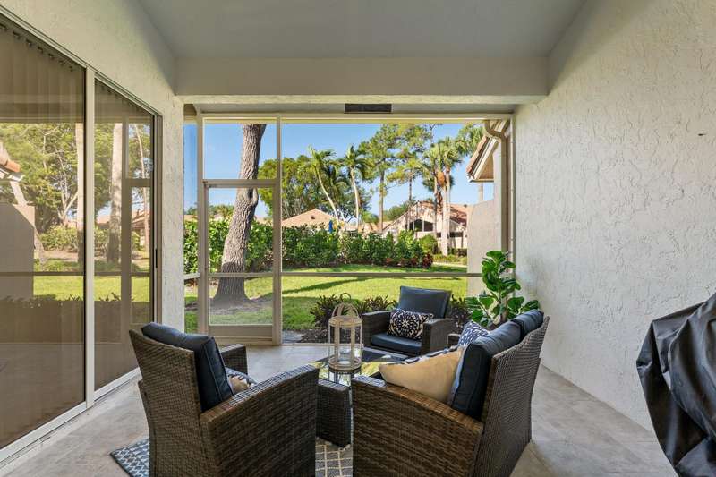 Dreamy PGA NATIONAL seasonal or annual furnished rental that is available and ready! This beautifully updated 2 bedroom /2 bath Villa was just freshly painted with beautiful updates and upgrades added throughout. With volume ceilings, an open and bright split floorplan, a new chefs kitchen with Quartz countertops and stainless steel appliances and upgraded flooring- this property has it all. The expansive master suite offers an oversized walk-in closet, updated beautiful bathroom and vaulted ceilings. Enjoy relaxing in your private screened garden lanai located just steps from the community pool. No membership attached to rental. Access to 7 restaurants and a luxury spa. Memberships are available for purchase.
