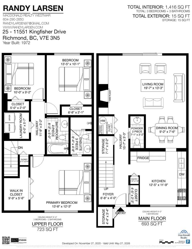 Westwind Townhouse, “West Chelsea.” Beautiful, spotless, & comfortable.This totally updated family townhome offers 3 bdrms and 3 baths 2 full and 1 half, 1,416 sq. ft. of well-designed living space, all professionally done. This bright two-level home features a gorgeous kitchen w/s.s. appliances, granite counters, spacious open living & dining area, new boiler system $25,000 in 2025, an excellent layout, ideal for family living. Enjoy the private south-facing backyard & patio with storage shed, perfect for relaxing or entertaining. This well-maintained development is ideally located just a short walk to Westwind Elementary, Steveston/London, Option French Immersion, McMath Sec. The strata is very proactive, with fences done in 2017, roofs in 2019, exterior paint in 2021 and new windows!