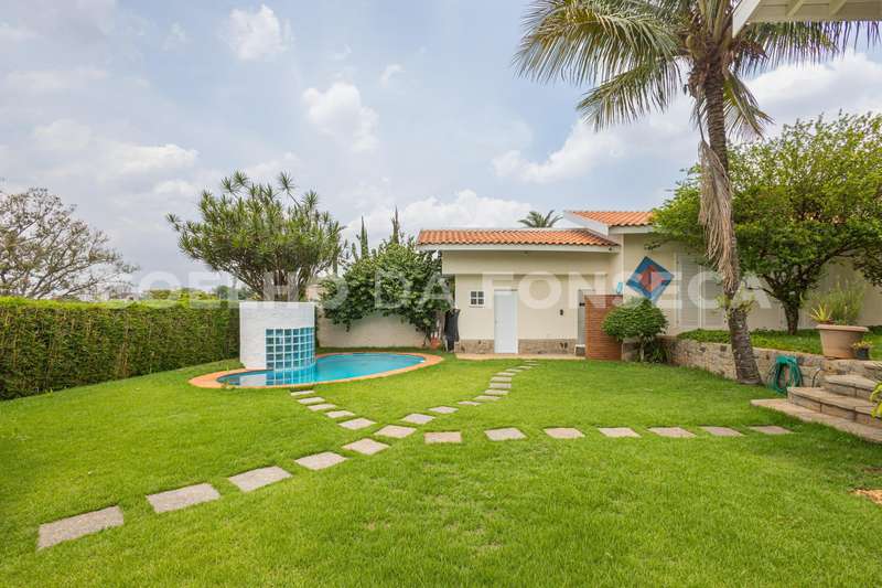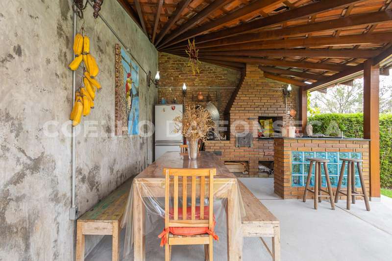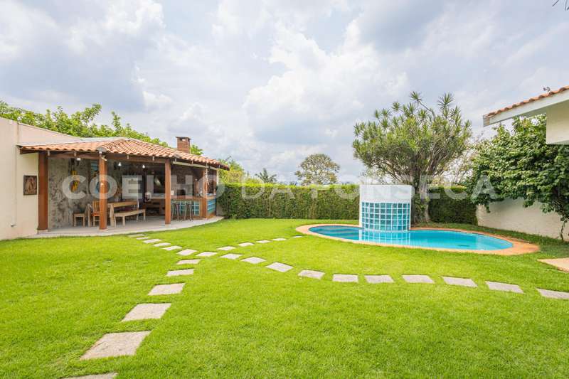 Jardim com frutíferas, piscina, sauna e espaço gourmet com churrasqueira, forno a lenha e forno de pizza.