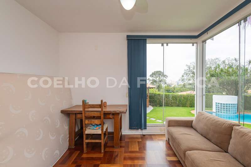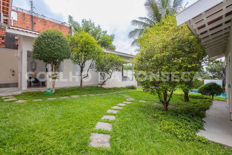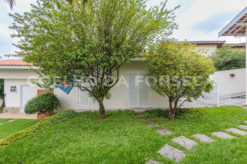Lá fora, edícula com lavanderia, dependência completa para funcionários e uma suíte com vista para o verde do jardim (espaço perfeito para ser utilizado como quarto de hóspedes ou escritório)