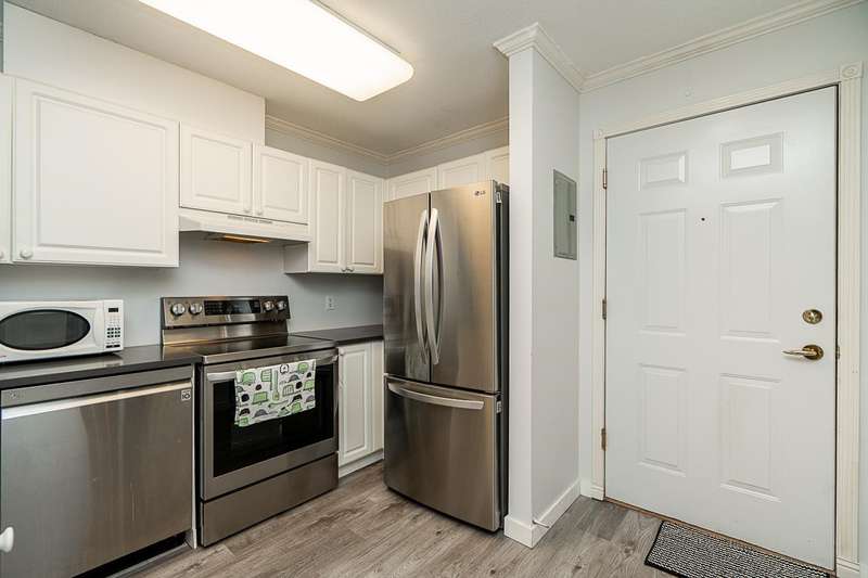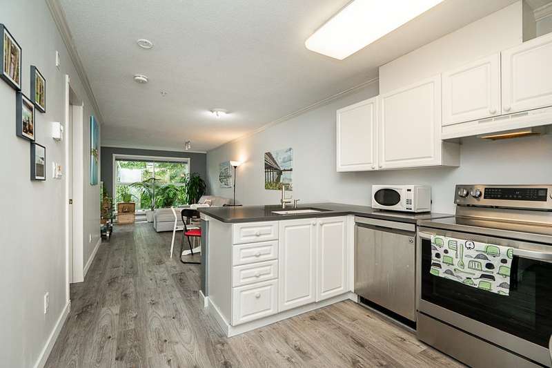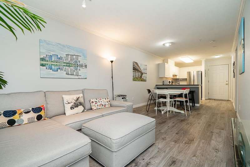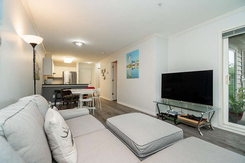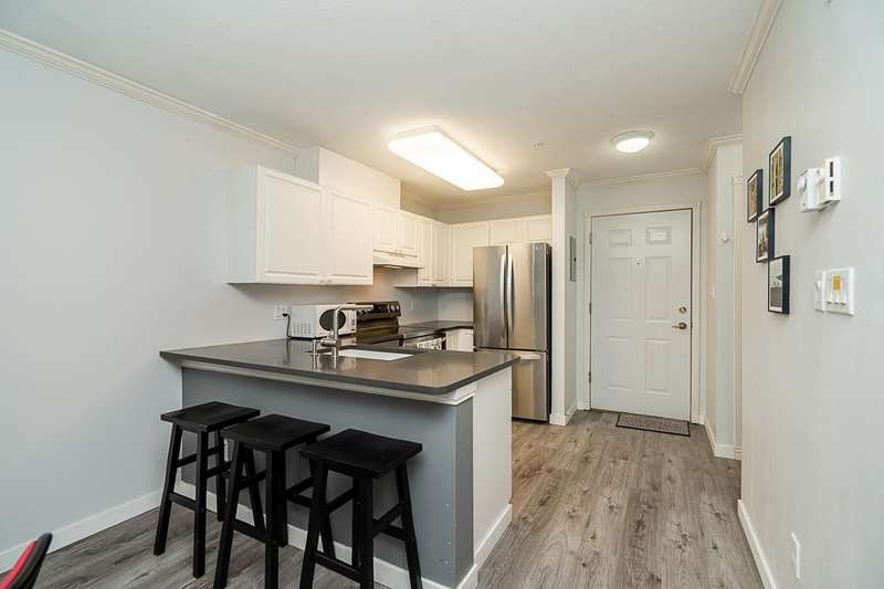 Welcome to the sought after Waterside! This is an affordable, quiet 1 bedroom corner unit which features an efficient floorplan, comes with a secured parking and low strata fee. This unit has many updates including quartz counter tops, under mount sink, stainless steel appliances, new washer / dryer, laminate floors, updated bathroom with a gorgeous shower and more. The building has well equipped recreation facility and many visitor parking spots. Various upgrades to the complex in recent years including the long lasting metal roofing. Conveniently located within walking distance to the popular dyke trails, schools, restaurants, T&T supermarket and a short drive to the YVR and all the amenities Richmond has to offer.