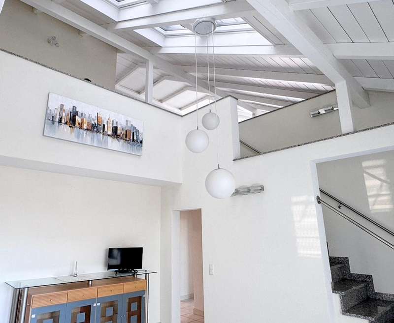 This attractive maisonette-style gallery apartment is located in a prestigious property in Groß Gerau and extends over two floors. Some floor-to-ceiling window elements allow you to enjoy a fantastic panorama over the rooftops and the countryside. The approx. 80 sqm roof terrace offers a 180 degree view. The property impresses with its very good lighting conditions and tasteful furnishings as well as its interesting and spacious floor plan. The spacious living gallery, which opens up to the gable roof, satisfies every interior design requirement for a room concept with the highest standards. This special property includes an approx. 30 sqm basement room with a window. Two individual garages (one of them with a parking space in front of it) are offered separately for € 15,000 each. IMPORTANT: Please understand that we can only carry out viewings with proof of capital or a financing confirmation. Thank you very much. Please be sure to include your telephone number in your inquiry so that we can arrange a personal, non-binding meeting. Incorrectly completed details will not be taken into account by our system and will be rejected. Take advantage of our exclusive financing service from Poll Finance and have a mortgage certificate issued. Your contact person is the financing specialist Mr. Marcel Krpesch, 0163/ 780 780 7, e-mail marcel.krpesch@vp-finance.de