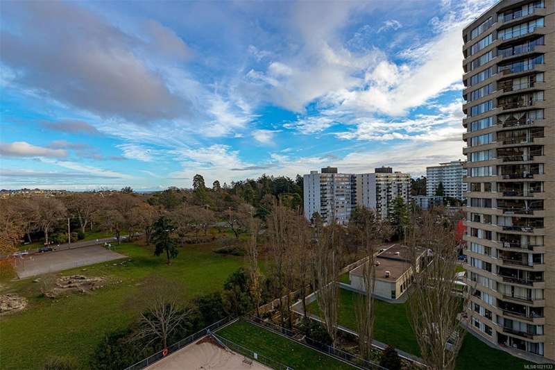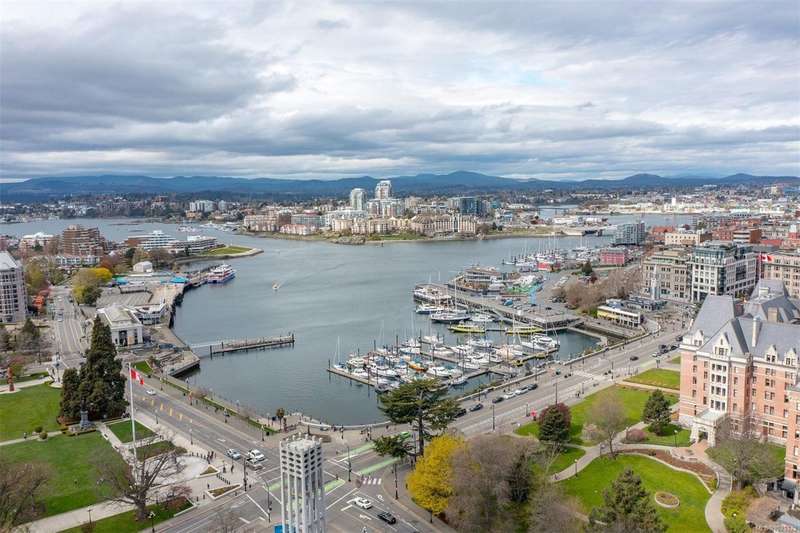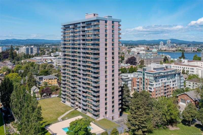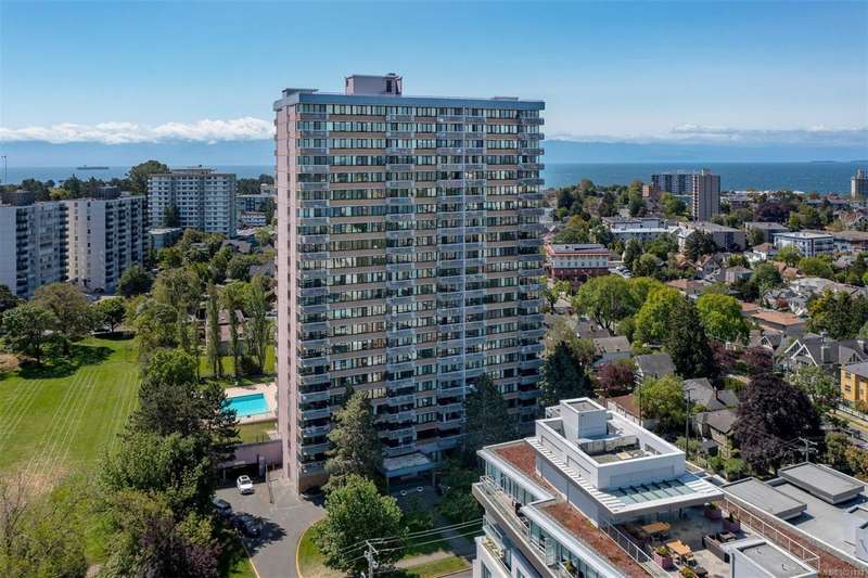 Beacon Hill Park, Dallas Road & Downtown living steps away! Fully rentable (no STR min 6 mo) in first class location. Previously rented out furnished @ $1600 in 2021. Great cash flowing investment opportunity with Orchard House in the heart of beautiful James Bay. This bright 10th floor condo frames spectacular ocean views with fabulous sunsets as ships drift by. Nicely appointed studio featuring new floors, windows & patio door. Amenities include UG parking, heated outdoor pool, sauna, hot tub, storage locker, bike storage, workshop & large shared laundry room on the main level. Quiet steel & concrete building with very low noise transfer. Monthly fees includes property taxes, heat, hot water & on-site management. An easy walk to James Bay shops, restaurants, banks, & library. Inner Harbour & Downtown Victoria are on your doorstep. Leasehold property, head lease expires in 2073. Incredible value & opportunity for a spectacular view condo in a concrete building on the edge of Downtown.