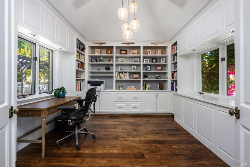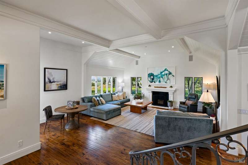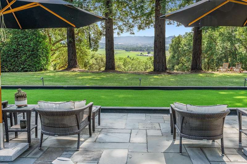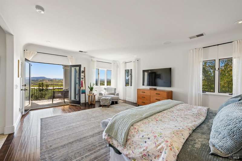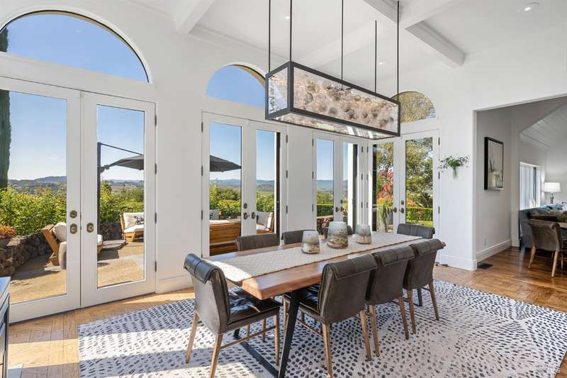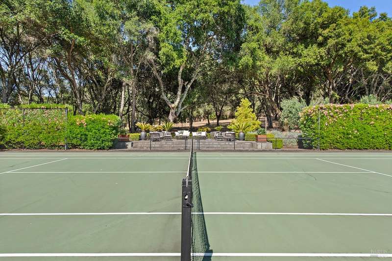 Welcome to 4395 Pine Flat Rd, an elegant Healdsburg estate offering some of the most breathtaking views in Sonoma County. Just minutes from downtown yet worlds away, this extraordinary property blends luxury, comfort, and resort-style amenities on 10+ mostly usable acres. The Main Residence consists of a four-bedroom, five-bathroom home is designed for both entertaining and everyday living. High ceilings, rich wood floors, and expansive windows frame vineyard and mountain vistas at every turn. Highlights include: Chef's kitchen with bar seating and seamless flow to the outdoor dining pavilion, formal dining room and multiple living spaces including a family room, library/office, gym, and wine cellar, main-level suite perfect for guests or multi-generational living, upstairs primary suite with private balcony, sitting area, and generous storage. A spacious detached studio offers flexible use for guests or extended family. Its outdoor entertainment area, complete with fireplace, is ideal for gatherings under the stars. This estate was made for relaxation and play, featuring a sparkling pool & hot tub, tennis court & bocce court, outdoor kitchen & vineyard-view dining, orchard, rose gardens, and raised garden beds, serene spots for birdwatching or simply doing nothing at all.