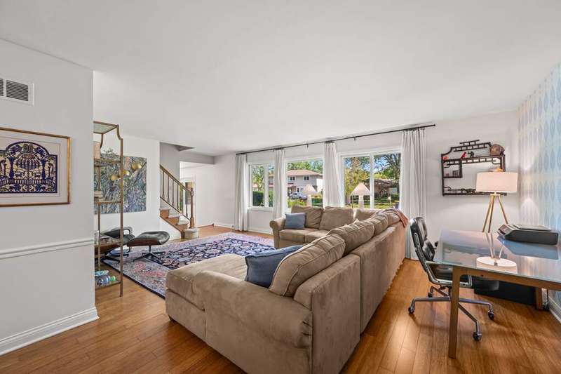 Get ready to be impressed with this beautiful, spacious, colonial in the highly sought-after Sunset Fields neighborhood in Northbrook! This terrific, over 2400 square feet home has so much to offer the lucky buyer. Ideally situated on an approximately 1/3 acre, oversized interior lot plus includes award-winning District 30 and Glenbrook North High School! There are SO many features and recent updates that make this home special! From the gleaming hardwood flooring throughout to the newer furnace, air conditioner, and roof, this home has been carefully designed to be both beautiful and practical. As you enter this lovely home, you will be immediately impressed by the newer, double-entry doors. You will then find the spacious foyer with large coat closet. Next, you will find a large living room and dining room, great for entertaining or relaxing in after a long day. Light-and-bright kitchen boasts quartz countertops, ample cabinet space, pantry, recessed lighting and a large eating area. The kitchen is open to the family room which has a lovely stone fireplace and sliders leading to the huge backyard! You will then be pleased to find a huge laundry room with washer/dryer, utility sink plus doors leading to both the garage and outside, another awesome feature that many houses do not have! An updated half bathroom completes this impressive first floor. The second level will not disappoint with a large primary suite including two closets plus a gorgeous, recently updated bathroom with new double vanity and custom tile shower with built in bench. The remaining, three generously sized bedrooms have access to yet another full bathroom. Two of these bedrooms have huge walk-in-closets allowing plenty of room for storage. Recently finished basement can be used as a recreation room, play room, office, or guest bedroom...so many possibilities in this large, versatile room! Just when you thought it could not get any better, you will be thrilled to see the huge backyard with concrete, wrap around patio, bushes and trees for privacy plus even a lovely garden...WOW! Two car attached garage, which many homes in the area do not have. Conveniently situated on a lovely, tree lined street close to everything including Northbrook Sports Center, YMCA, Wescott School, parks, shopping, restaurants, library, golf clubs, expressways, and the list goes on and on. Better hurry... an updated home like this in a terrific location with phenomenal schools won't last long!