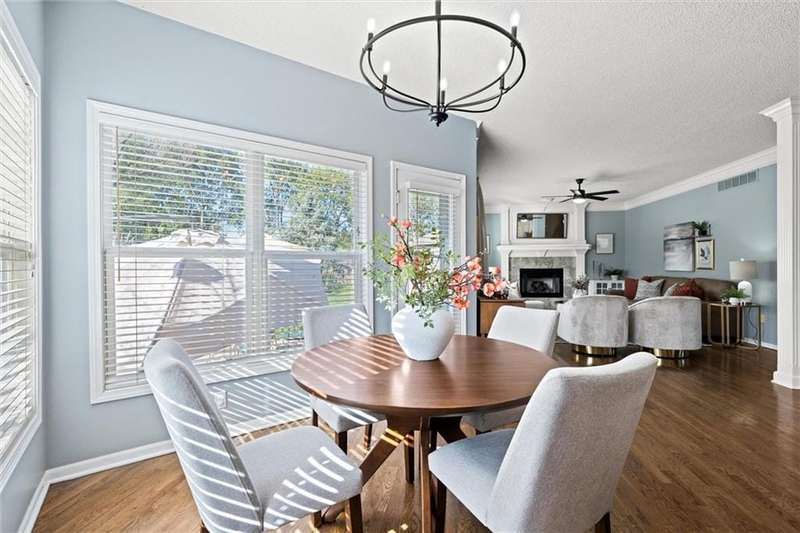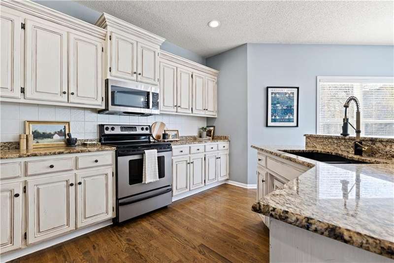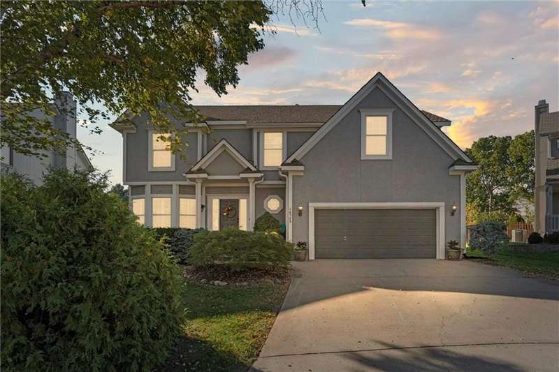 Welcome to 14708 Walmer Street now featuring BRAND NEW PAINT throughout 2nd floor! This beautifully cared-for home is nestled in Regency by the Lake, located in the heart of Overland Park. Thoughtful updates, generous living spaces, and a private backyard retreat make this home a true stand out.Step inside to find a light-filled floor plan with hardwood floors and elegant architectural details. The formal dining rooms richly colored walls and wainscoting create a striking first impression, while the open kitchen makes everyday living feel easy and connected. A main-level half bath and inviting living spaces offer both function and flow for gatherings large and small.Primary suite features a large en suite bath and walk-in closet leading directly to the laundry. Three additional bedrooms share a full hall bath, providing comfortable accommodations and flexible space. All bedrooms just had new carpet installed as well with fresh paint in two of the rooms.The finished lower level extends the living area with a rec room, full bath, and bonus room. The bonus space offers versatile options for a home gym, creative studio, guest space and more. The full bath is connected to both the rec room & the bonus room making it a perfect space for a guest suite. All this space and still plenty of storage in the unfinished storage room. The 2 car garage features extra space to allow for storage of lawn equipment, bikes, etc.Step outside to your private patio surrounded by lush landscaping creating a peaceful setting for morning coffee or evening gatherings. Plus a sprinkler system to keep the lawn green all summer!Located just steps from Lakewood Elementary and Lakewood Middle, both within the Blue Valley School District, and minutes from shopping, dining, and entertainment at BluHawk and Prairie Fire. This home offers a desirable blend of comfort and convenience in a prime Overland Park location. HOA even includes walking trails and a neighborhood pool!