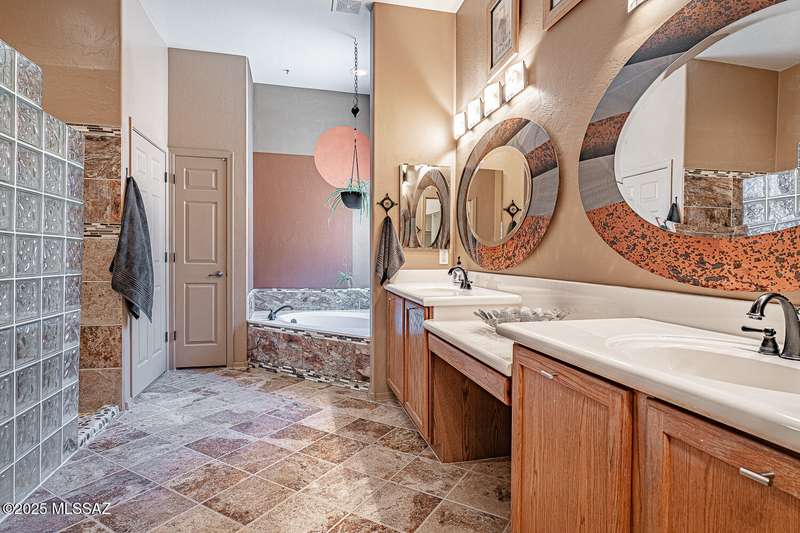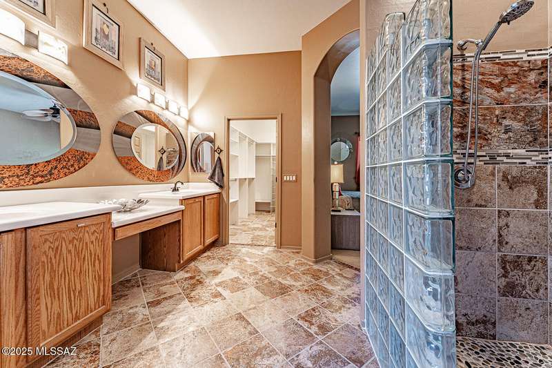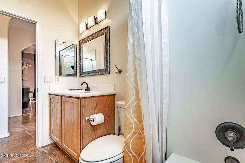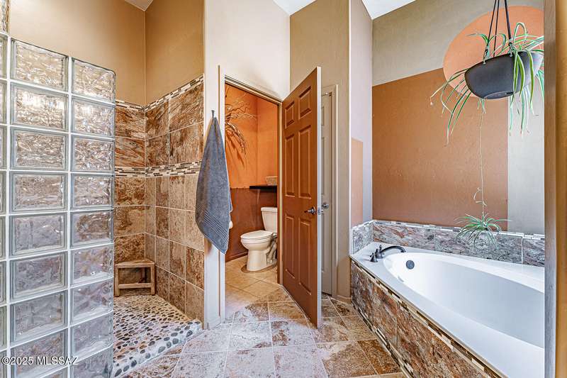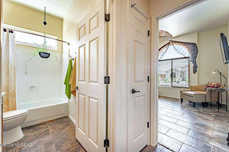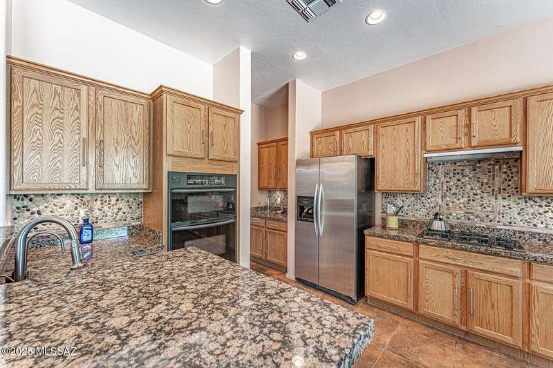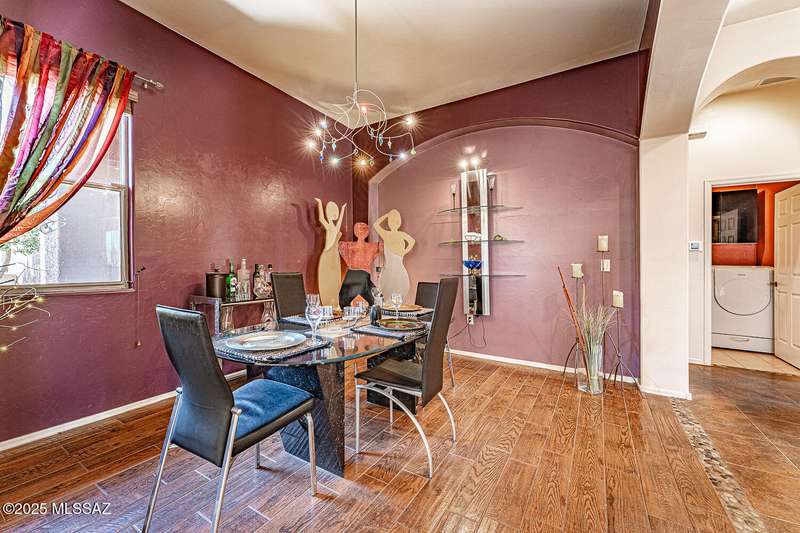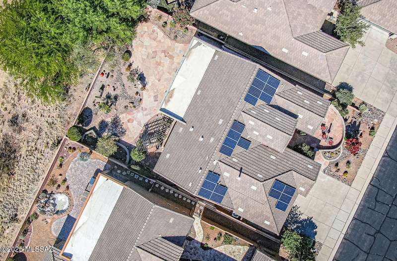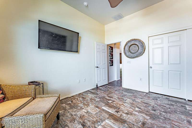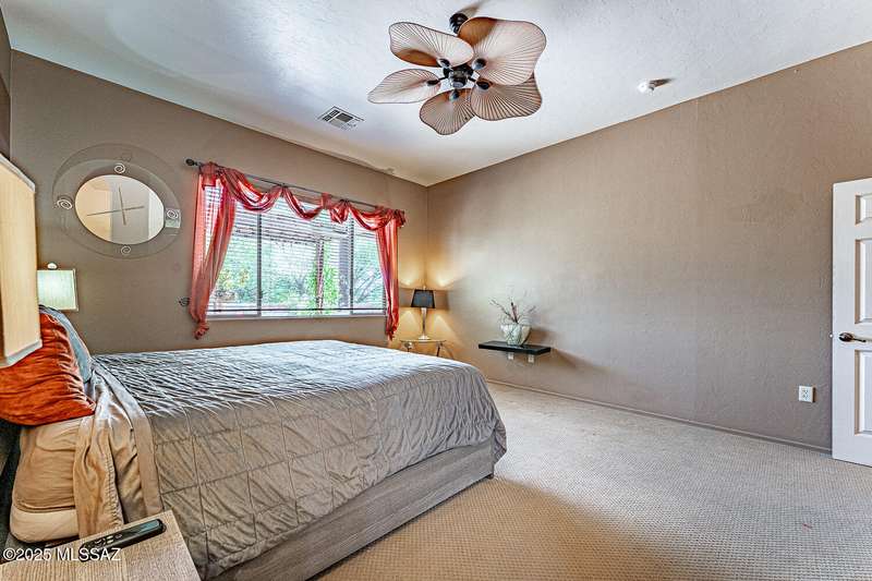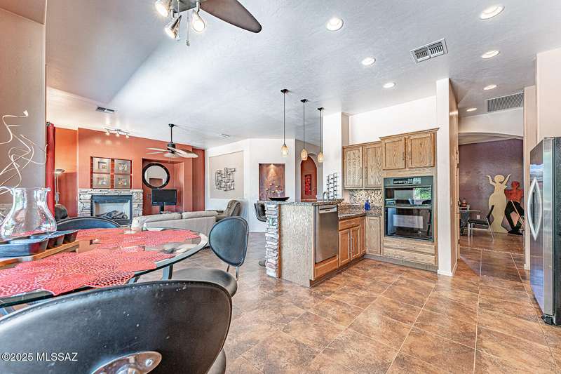 Step into charm! Enjoy stunning Elephant Head views from your private courtyard, then relax in a lush backyard with mature landscaping and a sunset-ready patio. Inside, tile flows through bright, freshly painted open spaces featuring a formal dining room and oversized office. The kitchen offers granite counters, a raised dishwasher, roll-out shelves, and a butler's pantry. The split floorplan includes a front guest room with wall bed and nearby bath, while the private primary suite boasts a modern walk in shower and soaking tub along with a custom closet. A 4ft-extended 3-car garage adds additional space and versatility. Every detail of this home has been touched with a contemporary accent and unique updates. Gated, peaceful, and near GVR--your next magical chapter awaits