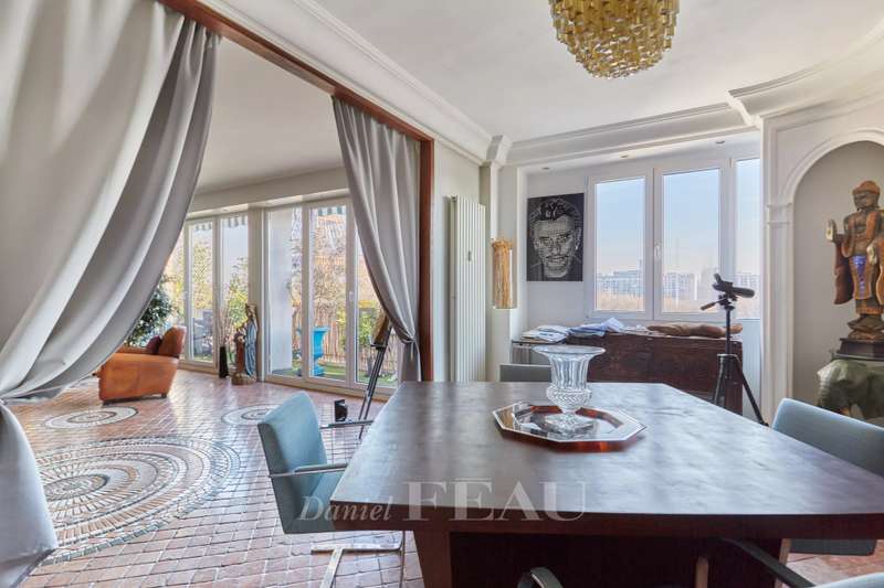 Quai Kennedy. This 103 sqm apartment on the 7th floor of a relatively recent building with a lift includes a double living/reception room and a dining room with wide patio windows opening onto a balcony commanding an exceptional view of the Eiffel Tower and the Seine, a kitchen, a bedroom and a bathroom. A second bedroom would be possible. With an 11 sqm maid’s bedroom, a cellar and a parking space.