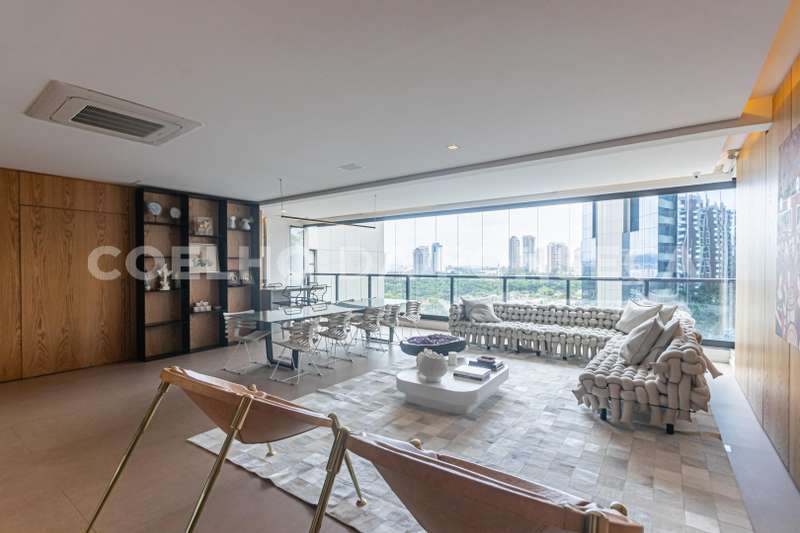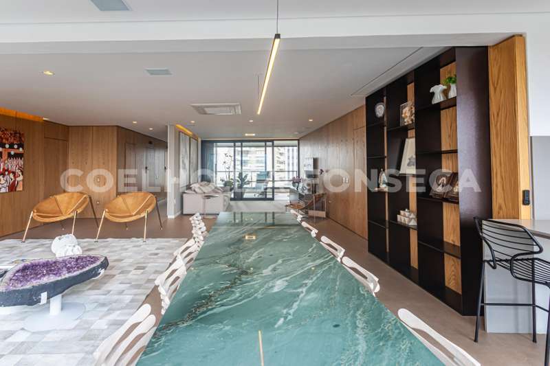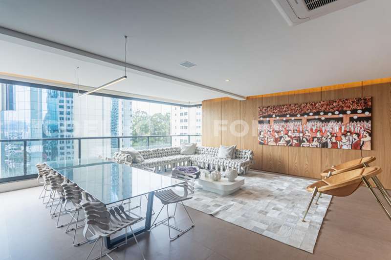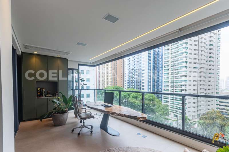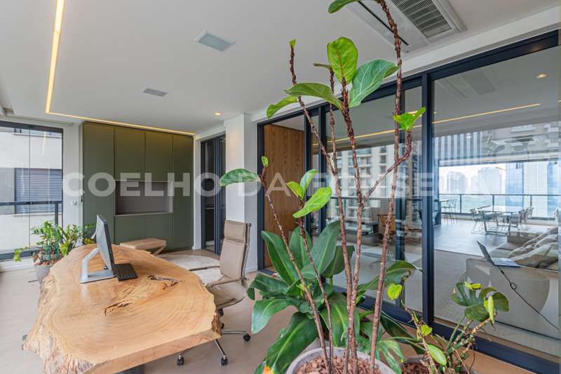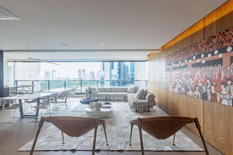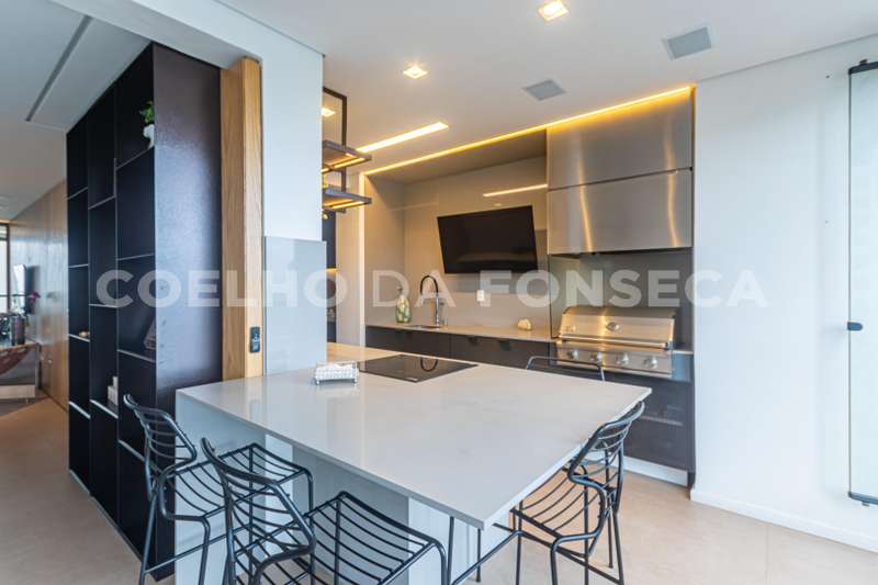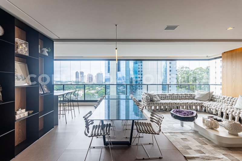 Apartamento no condomínio CANVAS HIGH HOUSES, com 288m² área privativa/útil, 3 dormitório(s), 3 suíte(s), 4 vaga(s), 5 banheiro(s), churrasqueira, escritório, depósito, mobiliado (a), ar condicionado, dep. de empregados, varanda gourmet.