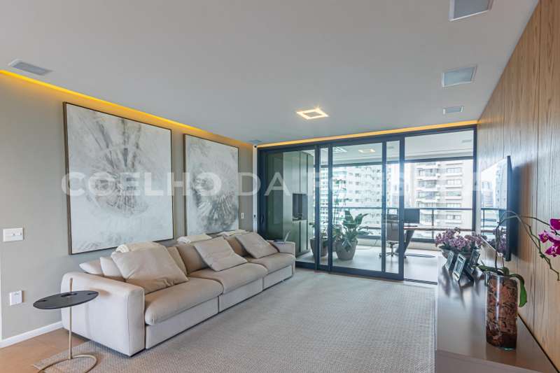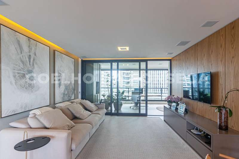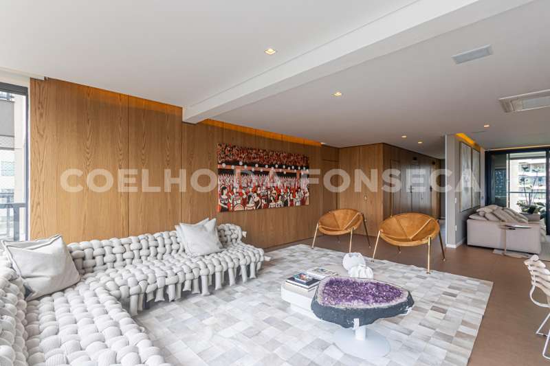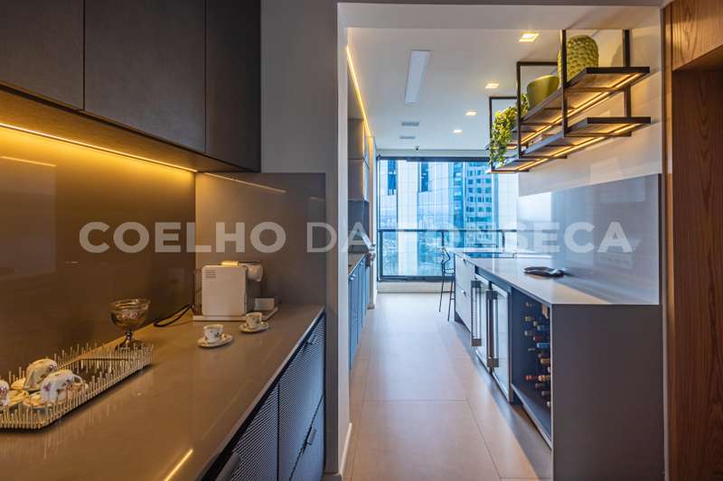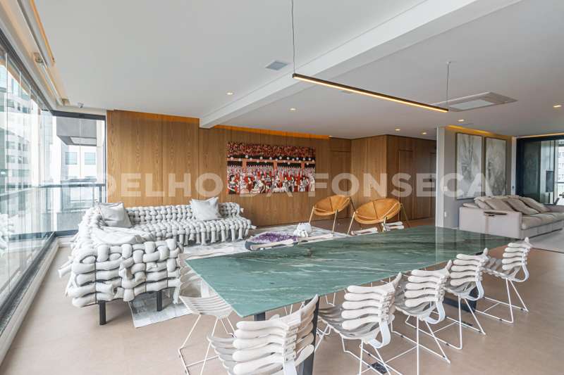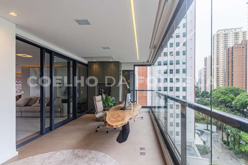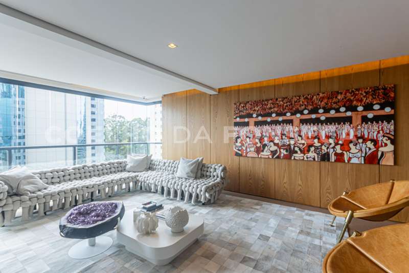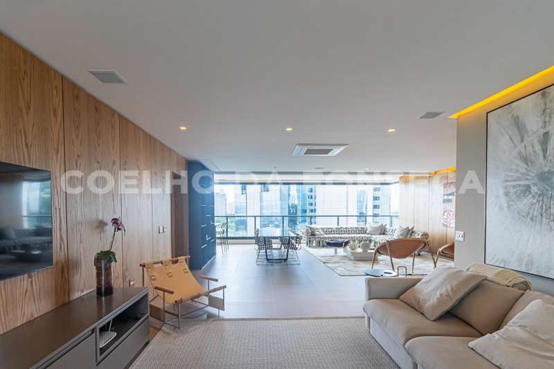 Apartamento no condomínio CANVAS HIGH HOUSES, com 288m² área privativa/útil, 3 dormitório(s), 3 suíte(s), 4 vaga(s), 5 banheiro(s), churrasqueira, escritório, depósito, mobiliado (a), ar condicionado, dep. de empregados, varanda gourmet.