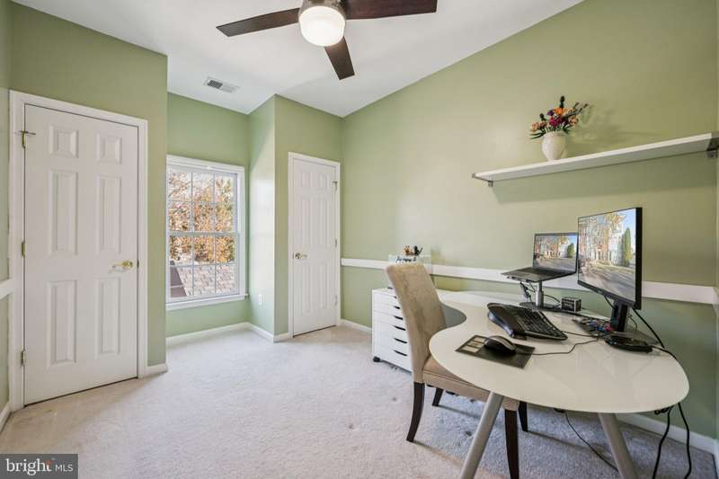 OPEN House, Saturday 1-3pm. Welcome to 328 Inspiration Lane - a well maintained brick-front Parkwood townhome nestled in the vibrant heart of Kentlands' Mid-Town District. Featuring a newer roof, fully owned solar panels, renovated bathrooms, and thoughtful upgrades throughout, this home is the perfect blend of charm and modern convenience. Step inside from the inviting covered front porch to the main level, where you'll be greeted by soaring 10-foot ceilings, rich hardwood floors, graceful archways, and elegant custom moldings. The entryway opens into a spacious living room and leads you to the separate dining room-perfect for both comfortable everyday living and formal entertaining. The spacious, updated kitchen features stainless steel appliances, crisp white cabinetry, granite countertops, a central island, built-in desk, and a cozy breakfast nook, along with a convenient half bath. Step outside to a private, fenced patio that extends your living and entertaining space. From the patio, you'll find access to the detached two-car garage, which is pre-wired for an electric vehicle charger. Upstairs, the expansive primary suite features vaulted ceilings with a ceiling fan, two generous closets, and a beautifully renovated spa-like bath with an air-jetted soaking tub, separate shower, and dual vanities. Two additional bedrooms, an updated full hall bath, and a full laundry room complete the upper level. The fully finished lower level offers versatile living space, including a large recreation room with a cozy gas fireplace, a full bathroom, a flexible den or media room, and ample storage. Enjoy the unbeatable location-just moments from shops, restaurants, the weekend farmers market, movie theater, lakes, trails, playgrounds, and all the amenities of this vibrant pool and tennis community. Come experience why so many love calling Kentlands and Lakelands home!