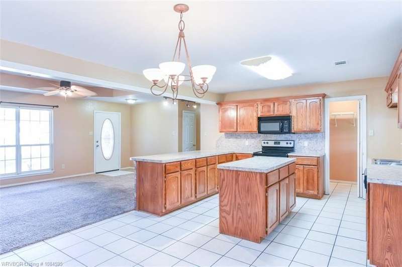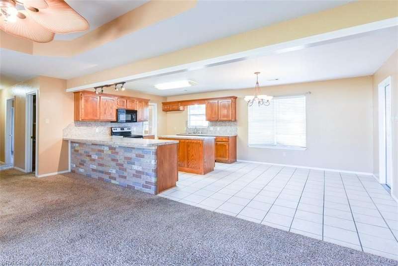 3 bed 2 bath home with open floor plan for kitchen and living area. This home is great for entertaining and large family gatherings. You will enjoy the side entrance garage, covered back porch, fenced in yard, and storm shelter. The garage is oversized for plenty of storage. There is an additional lot next door that can be purchased for $20,000.