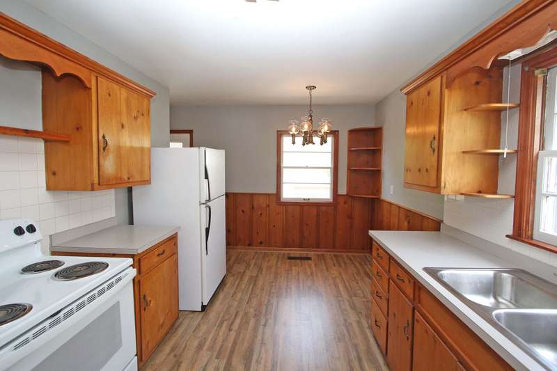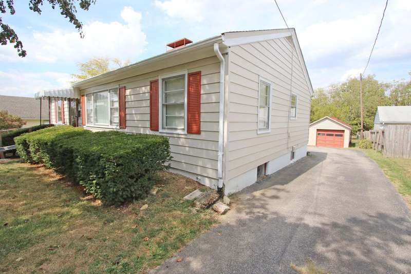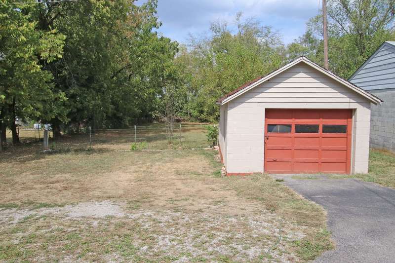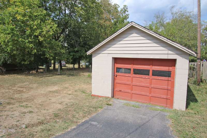 Spacious Double Lot Home in West Jessamine! Charming 3-bedroom, 1-bath home in the West Jessamine School District, walking distance to the elementary school and downtown Nicholasville, making for the most convenient location. The main level features a master with two closets, a bedroom with real wood walls, and a cozy living room with an electric fireplace. The full unfinished basement (1,288 sq. ft.) has roughed-in plumbing for a future bath or extra living space. Outside, enjoy a detached garage, wrap-around driveway, huge backyard with mature trees, fencing, and a stunning terra cotta red roof replaced 5 years ago. Front ramp can stay or be removed. Don't miss out, schedule your visit today! Buyer/agent to verify all information.