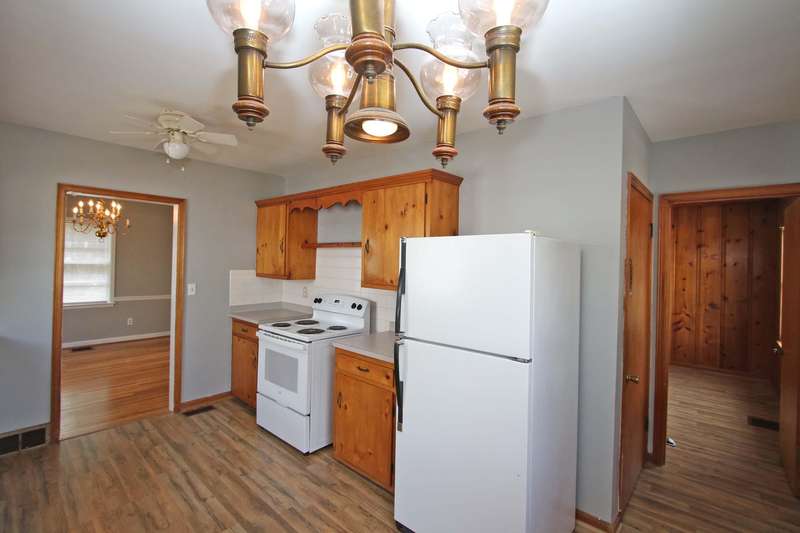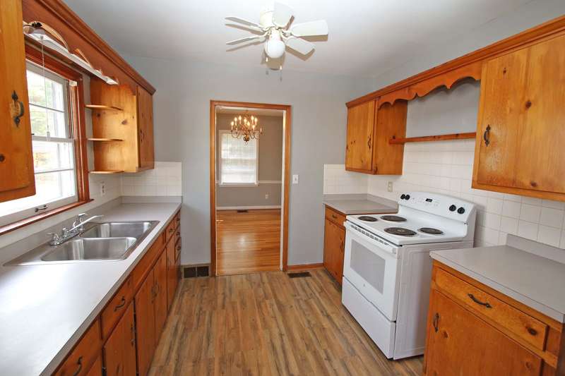 Spacious Double Lot Home in Nicholasville! Charming 3-bedroom, 1-bath home in the West Jessamine School District, walking distance to the elementary school and downtown Nicholasville, making for the most convenient location. The main level features a master with two closets, a bedroom with real wood walls, and a cozy living room with a wood burning fireplace. The full unfinished basement (1,288 sq. ft.) has roughed-in plumbing for a future bath or extra living space. Outside, enjoy a detached garage, wrap-around driveway, huge backyard with mature trees, fencing, and a stunning terra cotta red roof replaced 5 years ago. Front ramp can stay or be removed. Don't miss out, schedule your visit today! Buyer/agent to verify all information. Contract with 48 hour kickout-continue to show.