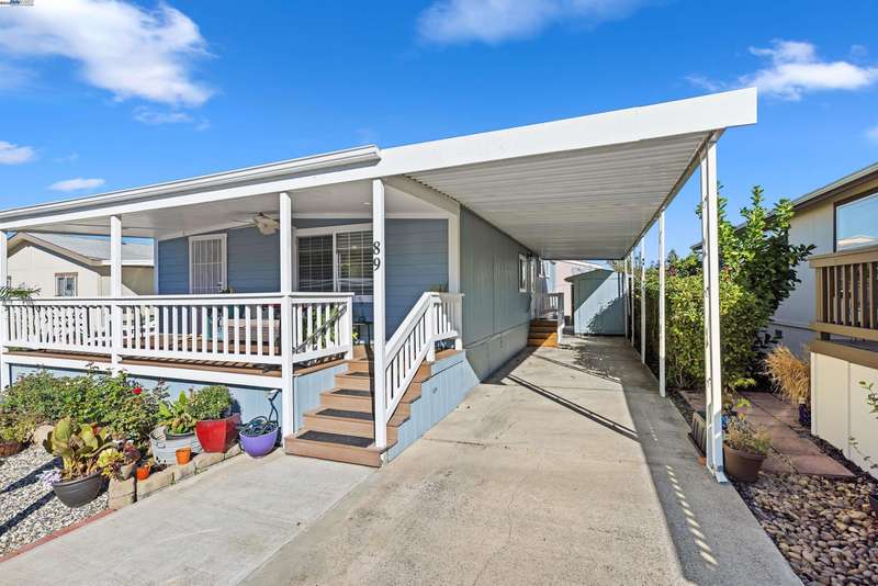 Welcome to Vineyard Estate's Sweetest, remodeled 2 Bed-2 Bath Bungalow that features the most inviting outdoor spaces, incredible custom storage and an extra long carport fit for 2. Thoughtfully positioned near the community's entrance, this Sun-filled, Southwest-Facing home enjoys sunrises & sunsets from one of the largest front verandas overlooking the least amount of obstructions on a road less traveled. Vineyard Estates was graciously designed to not only limit through traffic in front of each home but position them to optimize sunlight in a home's main area. The clubhouse and mail cabana are located a few doors down and feature a party hall, game room, swimming pool, spa, dog-friendly greenbelts, laundry room, peaceful koi pond & relationship building activities. An inviting floorplan ready for entertaining that starts with an oversized Charleston style porch patio with ceiling fan & lighting that leads into a greatroom featuring elegant finishes with modern amenities. Extensively remodeled throughout with rich wood laminate flooring, neutral tones, DP windows & doors, elegant kitchen & bathrooms, impressive use of storage, upgraded lighting & plumbing throughout. Within a minute's drive to downtown, wineries shopping & more, this one is special. Start your memories here!