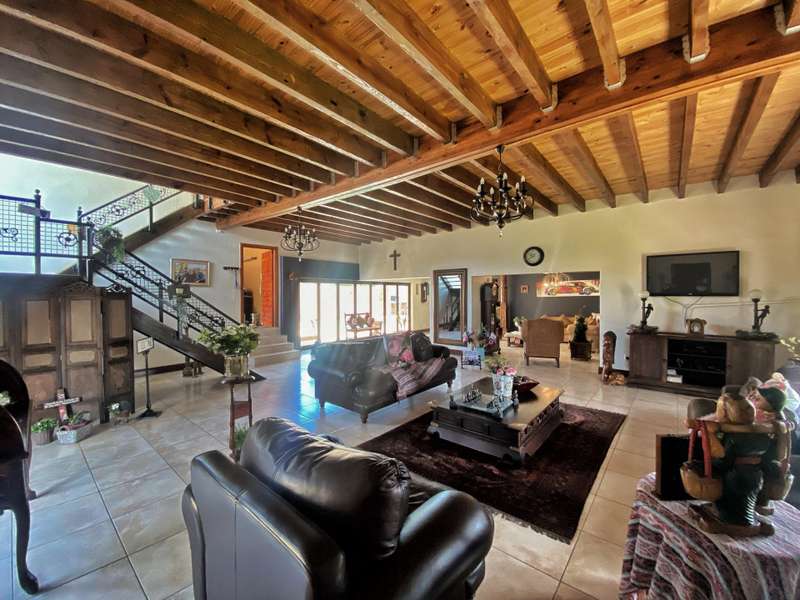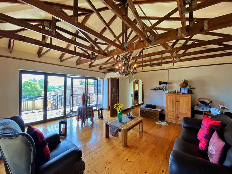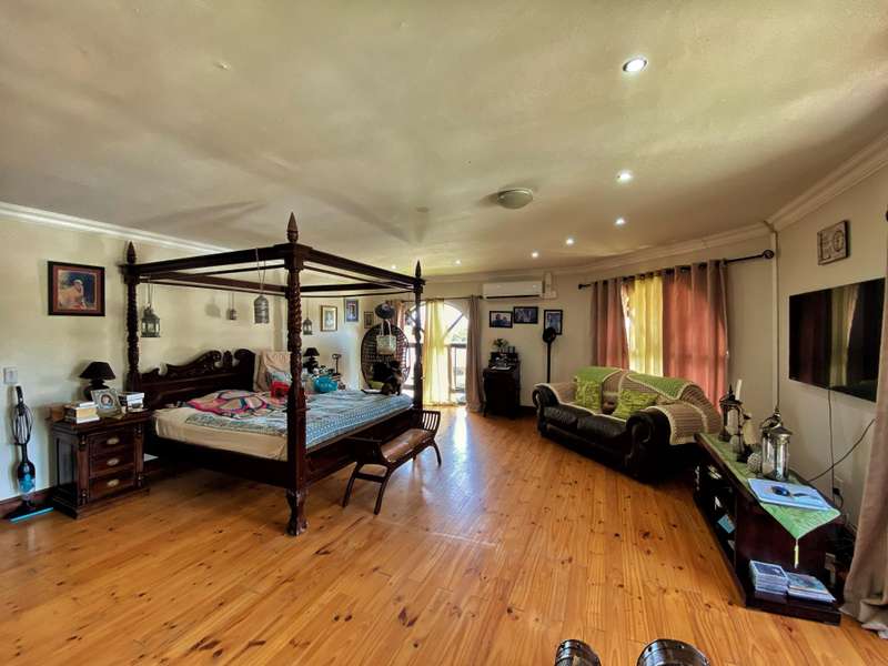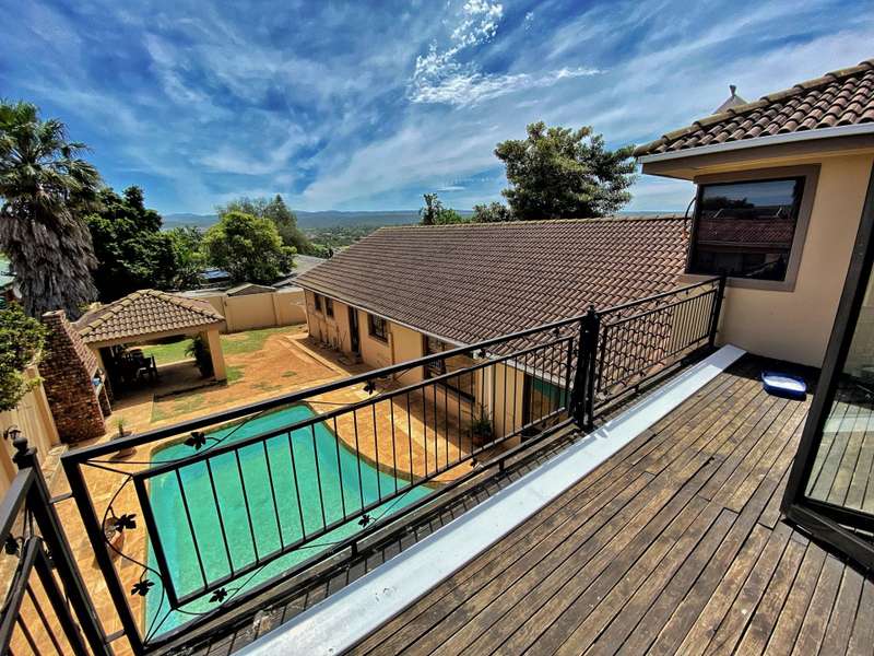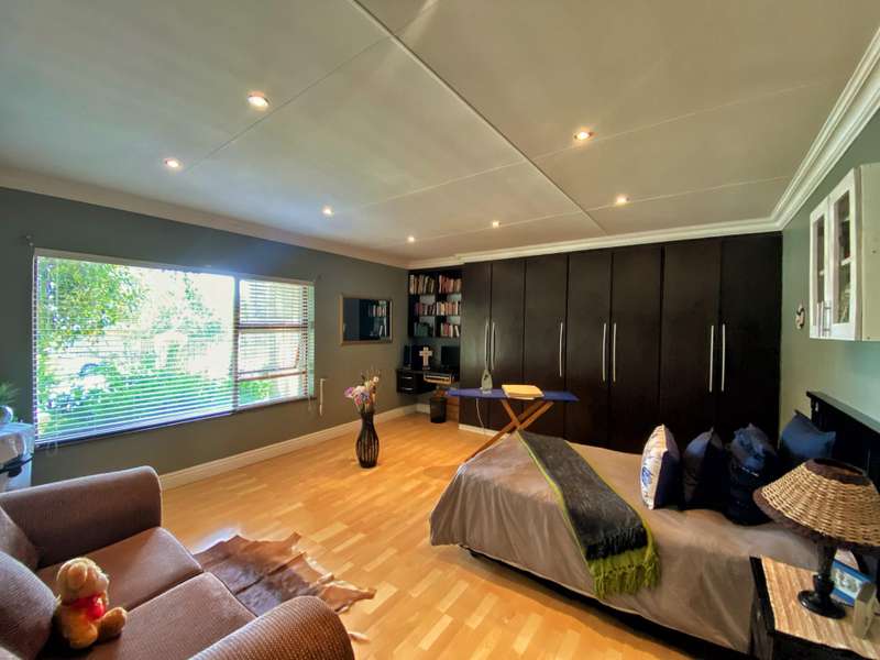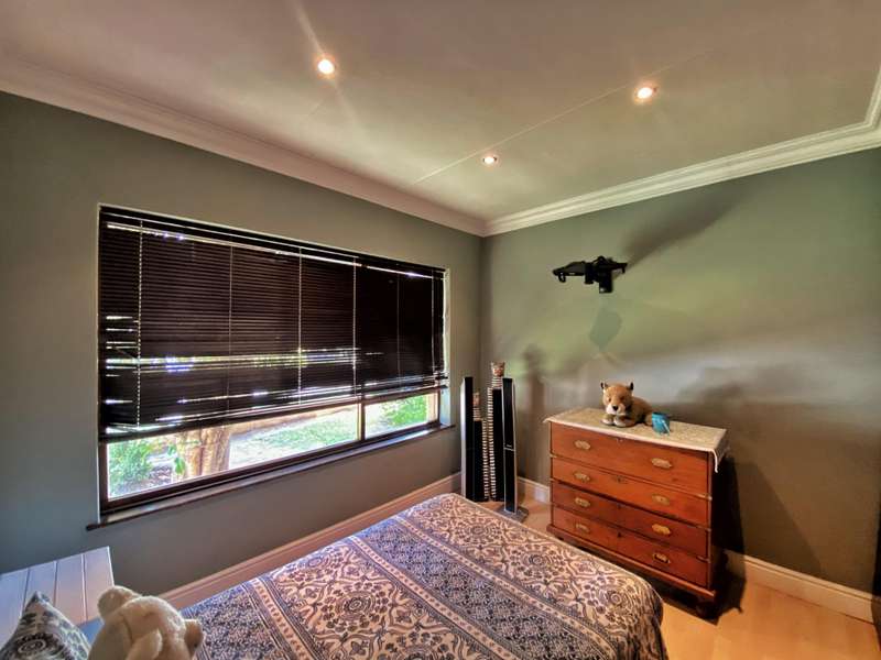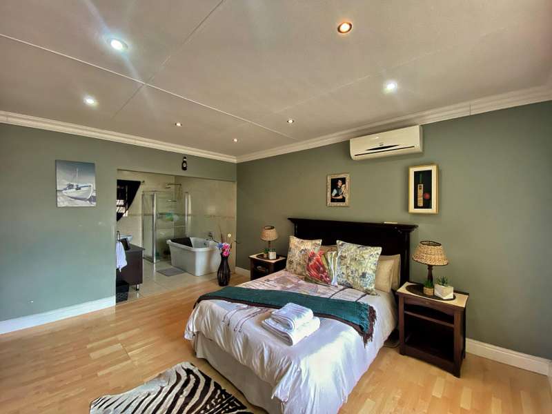 Introducing a modern and stylish property, this double-storey located on a corner plot is an ideal choice for those seeking contemporary living. Nestled in the highly sought-after area of Strelitzia Park, this property offers a captivating ambiance. Upon entering, you are greeted by grand wooden double doors that lead you into an open plan lounge, dining room, and a beautifully designed kitchen. The ground floor boasts three spacious bedrooms, one of which features a full en-suite bathroom. Additionally, a family bathroom and a separate toilet are conveniently located on this level. The ground floor seamlessly connects to the outdoor area, where stacking doors open up to reveal a sparkling pool and an inviting outside braai area. For those who enjoy indoor entertainment, an indoor braai with a bar area is also available. Ascending to the second floor, you will be captivated by the elegant wooden stairs and a stunning chandelier. Here, you will discover the expansive main bedroom, complete with a walk-in closet and a luxurious full en-suite bathroom. Additionally, a TV room and a guest half-bathroom is thoughtfully included on this level. Stacking doors open up to a balcony that overlooks the picturesque pool and braai area, providing a serene setting for relaxation. The property is fully enclosed, providing privacy and security. A double garage, accessible via remote control, offers convenient parking. Furthermore, an alarm system is in place to provide an added layer of security. To enhance comfort, the property is equipped with air conditioning. Two 5000 litre water tanks are located on the property, ensuring a reliable water supply. A convenient washing line is available for your laundry needs, and the shed provides extra storage space. To truly appreciate the beauty and elegance of this property, I encourage you to arrange a private viewing.