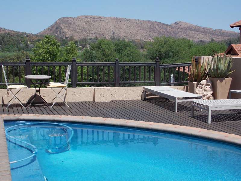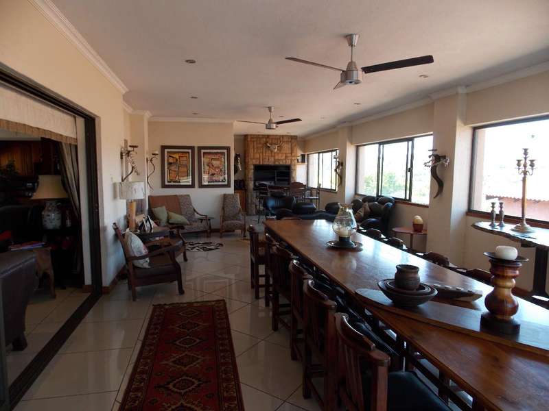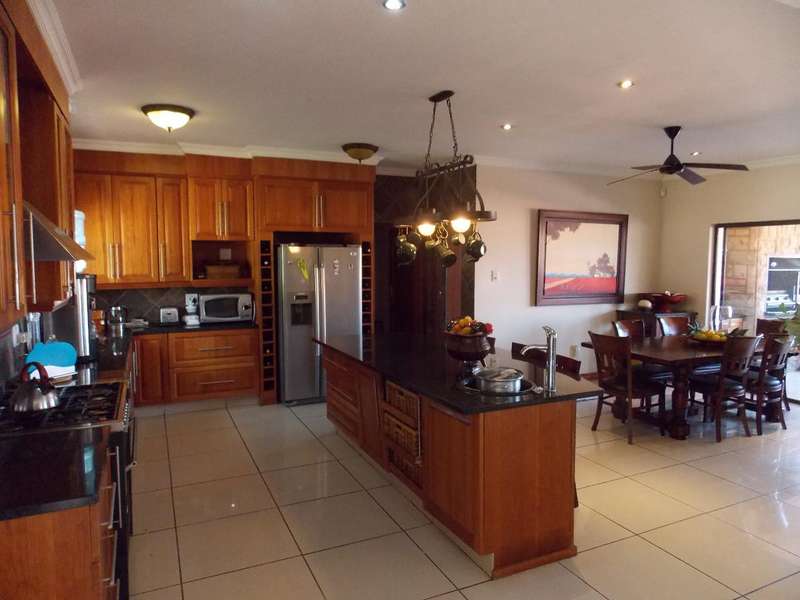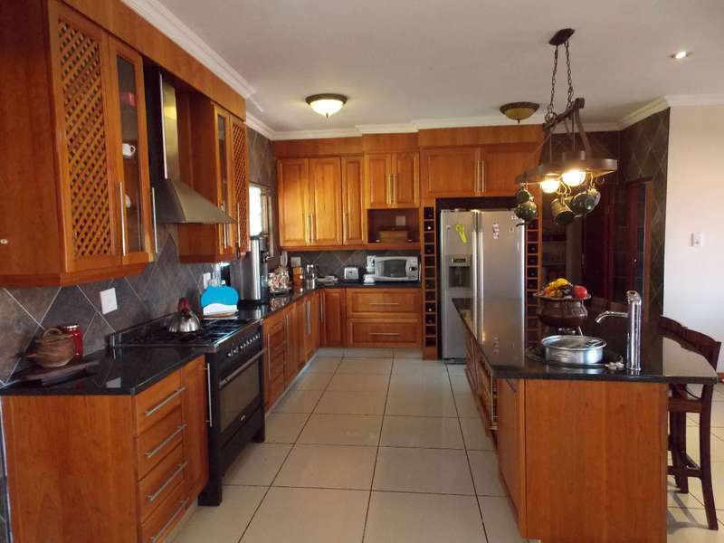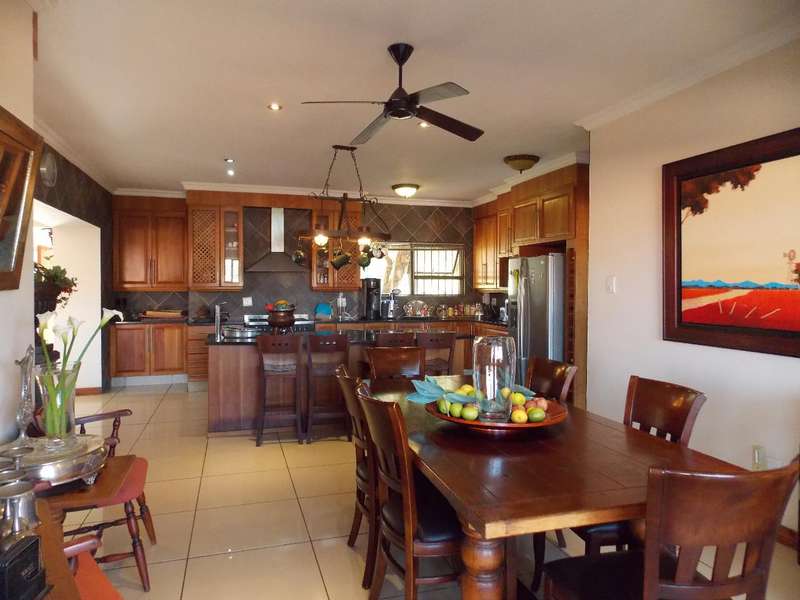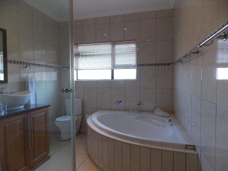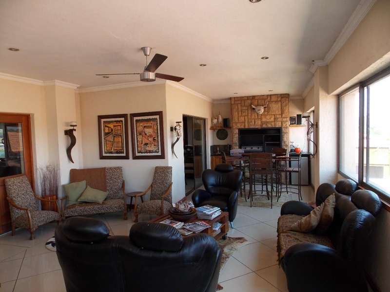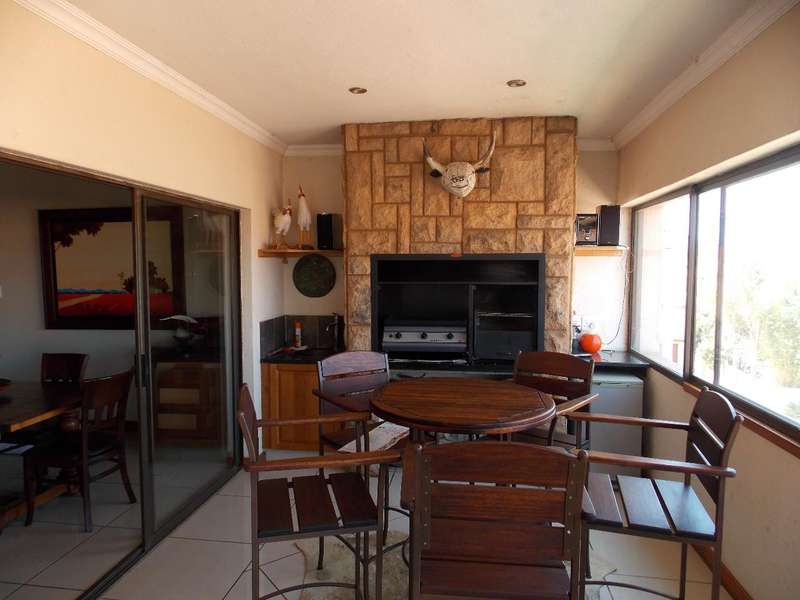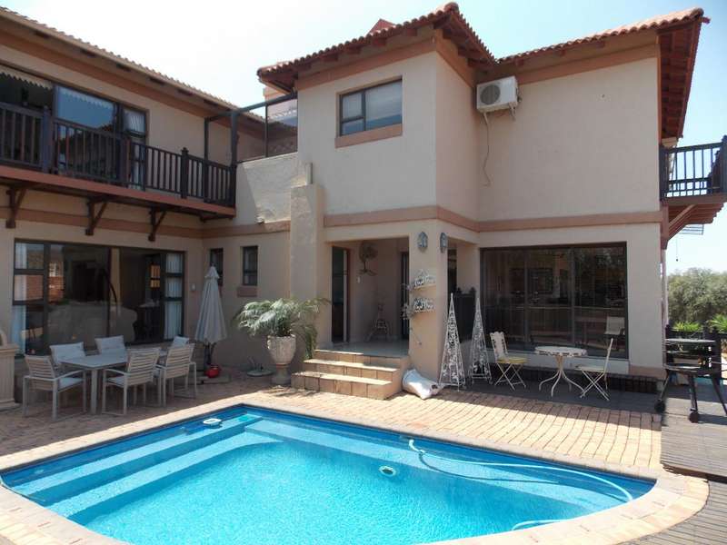 UPMARKET AND SPACIOUS FAMILY HOME This immaculate property is well maintained and is designed with spacious living areas adjacent to a modern kitchen with a separate scullery. The living areas links perfectly with the entertainment area, which is equipped with a build-in braai, from where you gain access to the pool area. This area is fitted with a separate bathroom. A guest bedroom is conveniently situated downstairs. The other 3 bedrooms are upstairs and is complimented by a separate living area with a kitchenette. This living area exits onto a patio with a build-in braai, from where you can experience the Dam view and the call of the Fish Eagle. The main bedroom exits onto a balcony from where yo have access to a private Jacuzzi. Parking is catered for with 3 automated garages and a carport. This lovely home is situated in a very sought after Estate in Hartbeespoort. The Estate is financially sound and offers a clubhouse, a gym, swimming pool, squash and tennis courts. This Estate is very popular for the reason that it is centrally located. The property and the Estate will tick all your requirements - do not delay viewing.