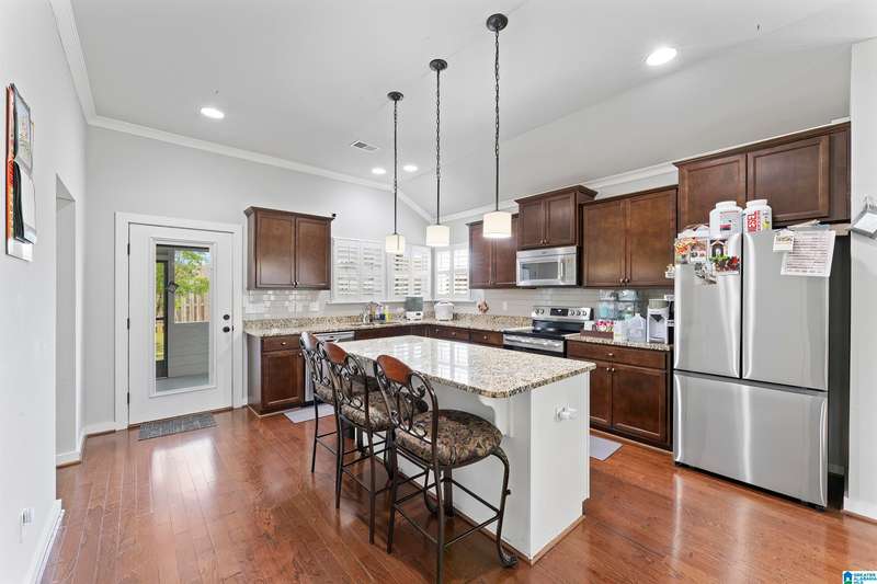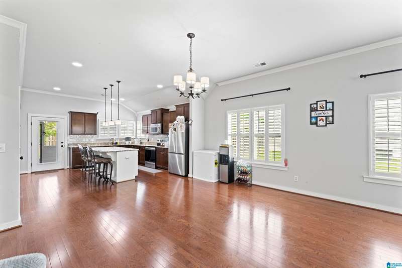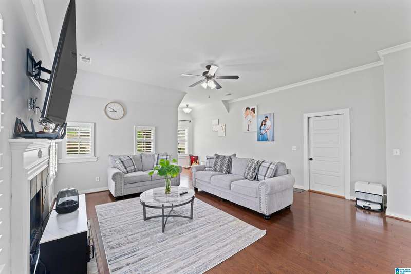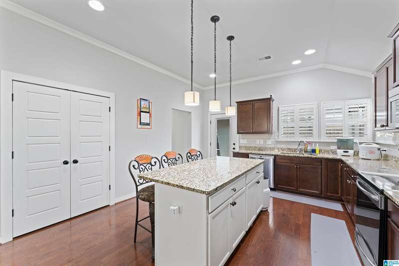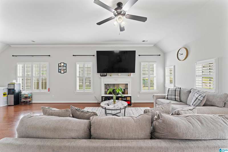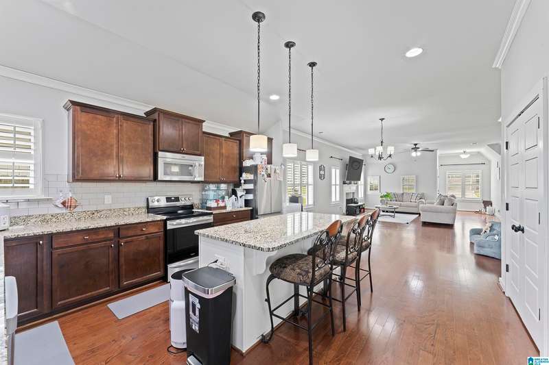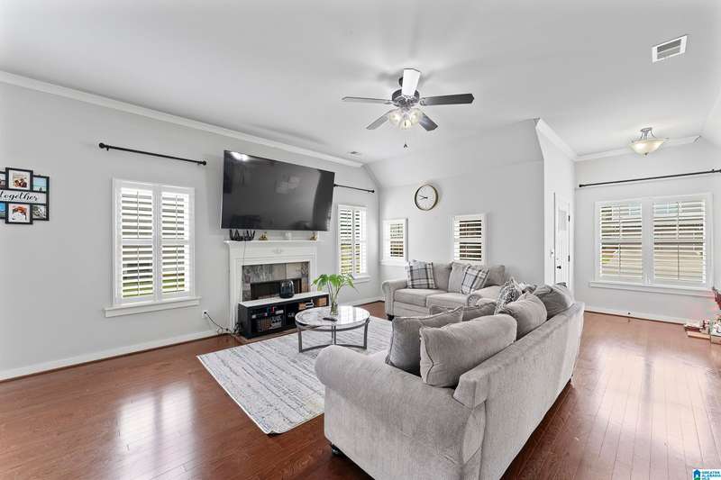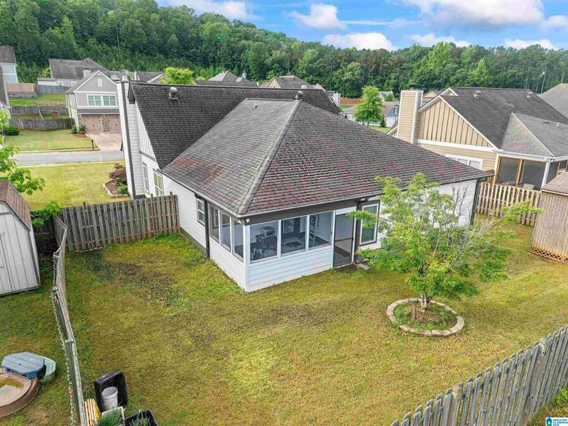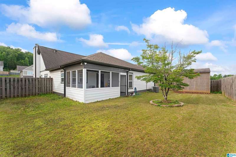 Located in the Arbors in Moody, 7008 Lavender Court provides modern, streamlined living. You'll immediately notice the flat, large driveway and gorgeous brick exterior! The floor plan is an open concept with ample natural light that shines throughout, accented by beautiful plantation shutters. There's hardwood flooring in the living areas and newer hardwood laminate flooring in the primary bedroom. The kitchen is spacious with newer stainless steel appliances, an island with bar seating, and a great-sized pantry. There's granite countertops, tons of cabinetry, and a formal dining area. Off the kitchen, there's a private, screened-in patio that overlooks the fenced backyard! Don't forget to take a look at the storage shed! The primary suite is spacious--walk in closets, garden tub, oversized tile shower, and separate vanities. Both secondary bedrooms and bathrooms are a fantastic size! Tesla Car Charger to remain! You don't want to miss this one!