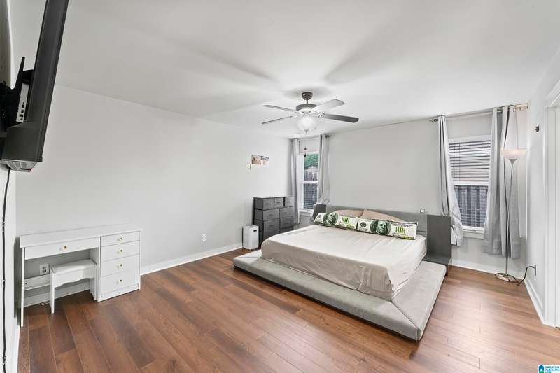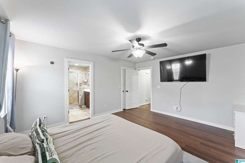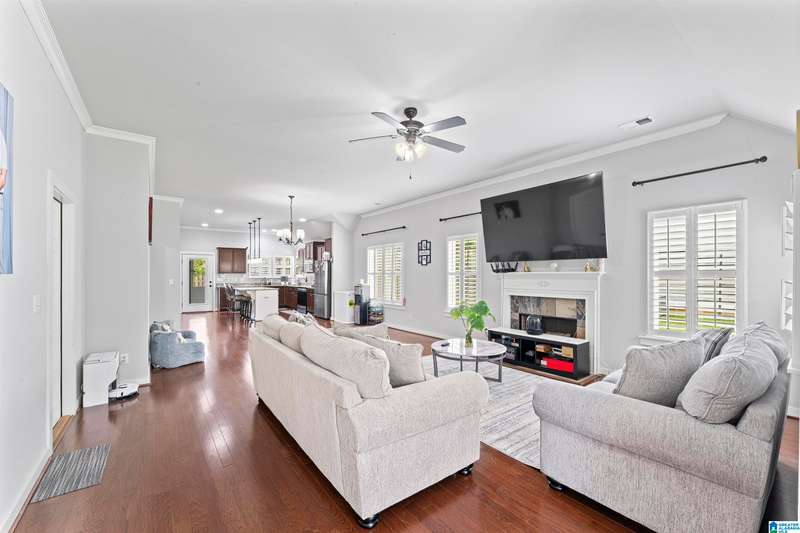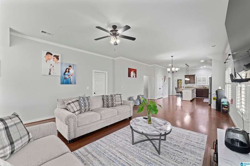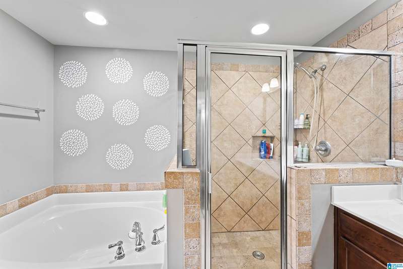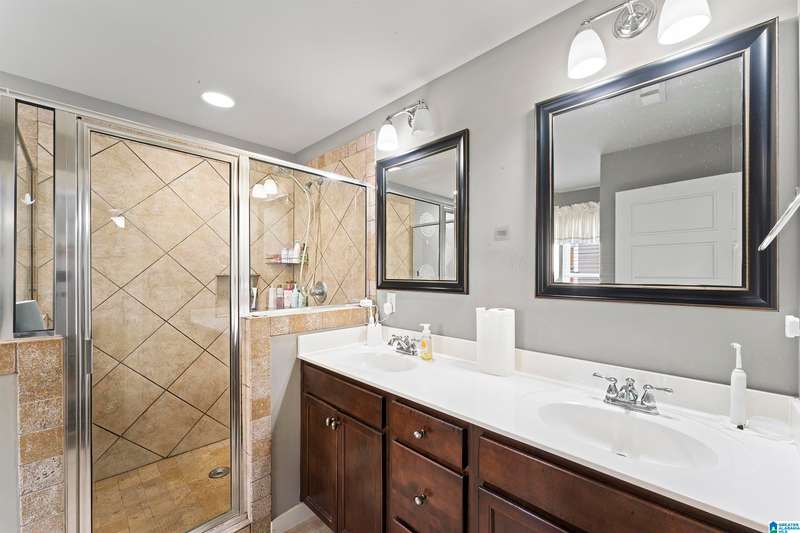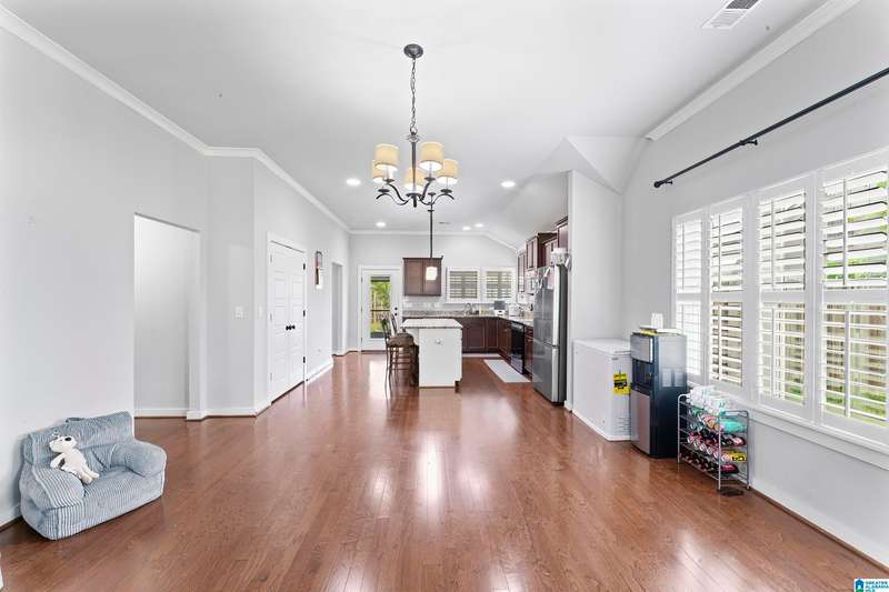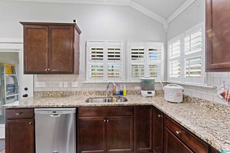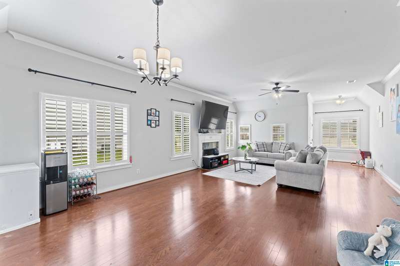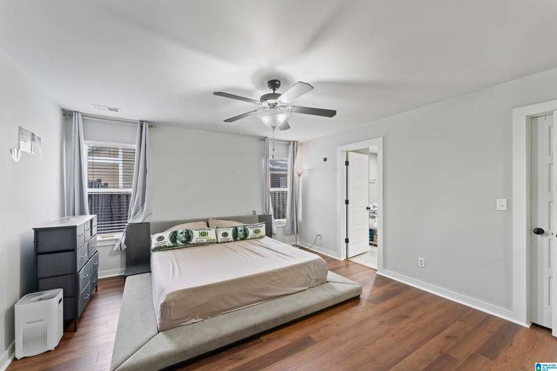 Located in the Arbors in Moody, 7008 Lavender Court provides modern, streamlined living. You'll immediately notice the flat, large driveway and gorgeous brick exterior! The floor plan is an open concept with ample natural light that shines throughout, accented by beautiful plantation shutters. There's hardwood flooring in the living areas and newer hardwood laminate flooring in the primary bedroom. The kitchen is spacious with newer stainless steel appliances, an island with bar seating, and a great-sized pantry. There's granite countertops, tons of cabinetry, and a formal dining area. Off the kitchen, there's a private, screened-in patio that overlooks the fenced backyard! Don't forget to take a look at the storage shed! The primary suite is spacious--walk in closets, garden tub, oversized tile shower, and separate vanities. Both secondary bedrooms and bathrooms are a fantastic size! Tesla Car Charger to remain! You don't want to miss this one!