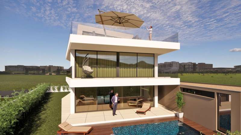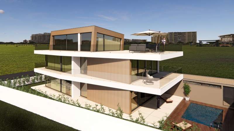 Luxury 4+1 bedroom villa with sea views, panoramic rooftop, garden and pool for sale in Arcozelo, Vila Nova de Gaia. Set on a 500 m² plot, this villa with contemporary lines andpremium finishes was designed for those who value design, comfort and a harmonious connection with the outdoors, as well as proximity to the beach. With around 385 m² spread over three floors, the house offers spacious and bright spaces: on the first floor is the open-plan living area, with a rotating suspended fireplace and large glazed areas, which invites you to enjoy the views and natural light throughout the day.An additional room can easily be converted into an office or guest space. On the second floor there are three suites with balconies, including a master suite with a generous dressing room. Finally, on the second floor, the large rooftop stands out for its stunning sea views and the unique atmosphere it provides. With a kitchen, living room, generous terrace and bathroom, it's the ideal space for socializing or simply relaxing while enjoying the sunset over the ocean. The surrounding garden with swimming pool, the garage with laundry and the home automation system complete this villa where every detail has been thought out to offer comfort, elegance and well-being. Located just a few steps from the beach and the promenade, it combines privacy and exclusivity with the convenience of having cafés, restaurants, services and great access nearby. CHARACTERISTICS: Plot Area: 485 m2 | 5 221 sq ft Deployment Area: 181 m2 | 1 948 sq ft Building Area: 385 m2 | 4 144 sq ft Bedrooms: 4 Bathrooms: 5 Garage: 2 Energy efficiency: B FEATURES: Garden with swimming pool of 19.50 m²; Two balconies on Floor 1 with 60.00 m²; Terrace on Level 2 with 132.40 m²; Closed garage for 2 cars and an uncovered space.