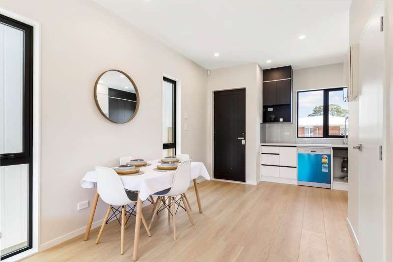 First home buyers, investors, young professionals, or downsizers, this brand-new affordable house is an ideal home to satisfy all your needs. Features: - 2 bedrooms, 1.5 bathrooms - Standalone, freehold title with one car park - No Body Corp and society fees - Private and low maintenance lifestyle - Fully fenced backyard - Quality Bosch kitchen appliances - Open plan living - Double glazed windows, alarm system, air-conditioner and under floor heating Great location: The Te Atatu South Park opposite you. Take away, pizza, haircut, vegetable shops a couple of doors away. A short distance to West City mall, West Wave pool, Waitakere Library, and more and to the motorway. It is near by the Frey berg Community school, Rangeview intermediate, and Rutherford college. The private ACG Sunderland School is also in a minute drive location. Please contact me now to arrange a viewing.
