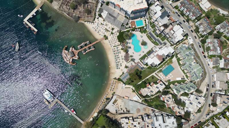 The chic properties with sea views are situated in the Yalikavak neighborhood of Bodrum, Mugla. Yalikavak is one of the most popular living and tourism centers in the northwestern part of Bodrum. Yalikavak features beautiful Aegean views. The properties with sea and marine views are within walking distance of restaurants, cafes, markets, pharmacies, banks, and hospitals.