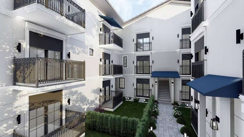 The project has a land area of 1085 m². It consists of 20 apartments: 10 1-bedroom apartments with independent entrances on the ground floor and 10 duplex 2-bedroom apartments on the first floor. The project has a common swimming pool, landscaped garden, solar energy for each apartment, an intercom system, and a central satellite receiver.