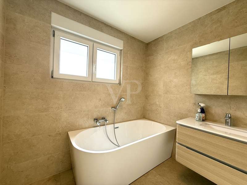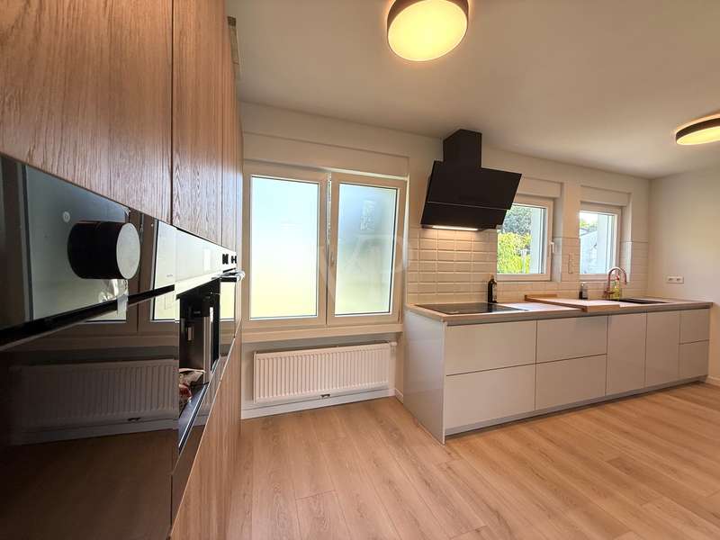 A spacious semi-detached house in a preferred residential area of Lüdenscheid / Hellersen is for sale. The property was completely renovated in 2025 and furnished with impressive attention to detail (e.g. all rooms have smooth plaster / the flush interior doors are fitted with magnetic locks / network connections have been installed in the bedrooms and living room). Some of the new windows have already been fitted with practical fly screens. First floor: You enter your new home on the ground floor and arrive in the large entrance area. Almost 11m² are available here for a checkroom and / or shoe cupboards. You can expect an open-plan living concept consisting of a living/dining room and kitchen. An elegant and timelessly designed fitted kitchen is already available and can be taken over for an additional charge. The bathroom on the first floor has a shower and a daylight window. Of course, there is also a chic bedroom on the first floor. You can access the cozy roof terrace from both the bedroom and the living room. The garden and terrace face south. Basement: A closed staircase takes you to the basement. Here, too, there are two bedrooms as well as a separate utility room, a classic cellar room and a boiler room. The bathroom in the basement has a bathtub and a daylight window. You can access the terrace from both bedrooms on the lower floor. Additional usable space is available under the garage. All fixtures and fittings can be purchased additionally on request. The property can be handed over shortly after notarization.