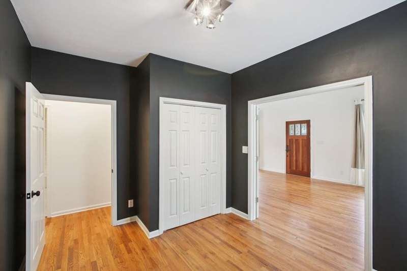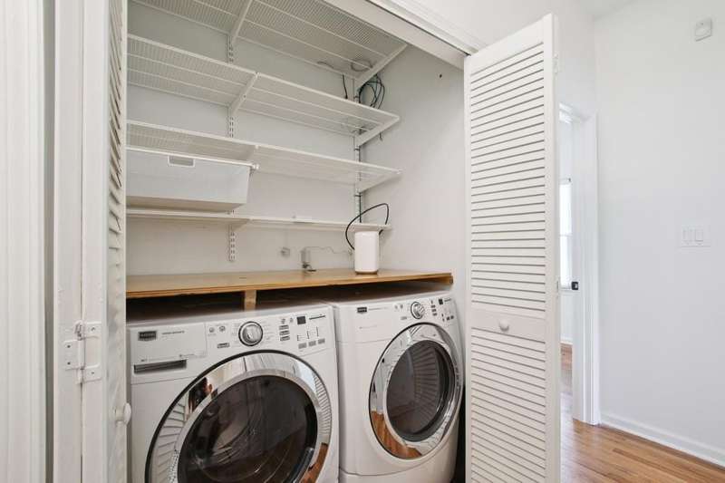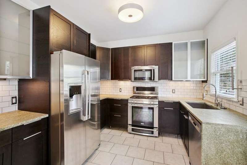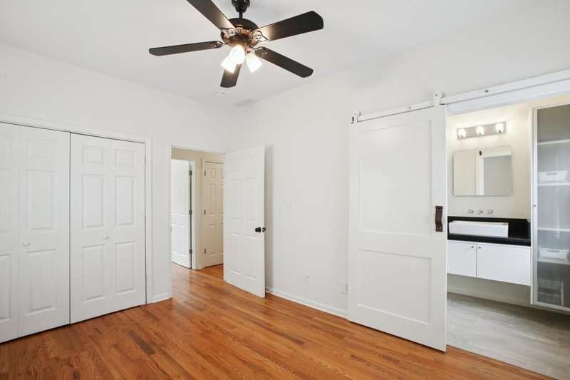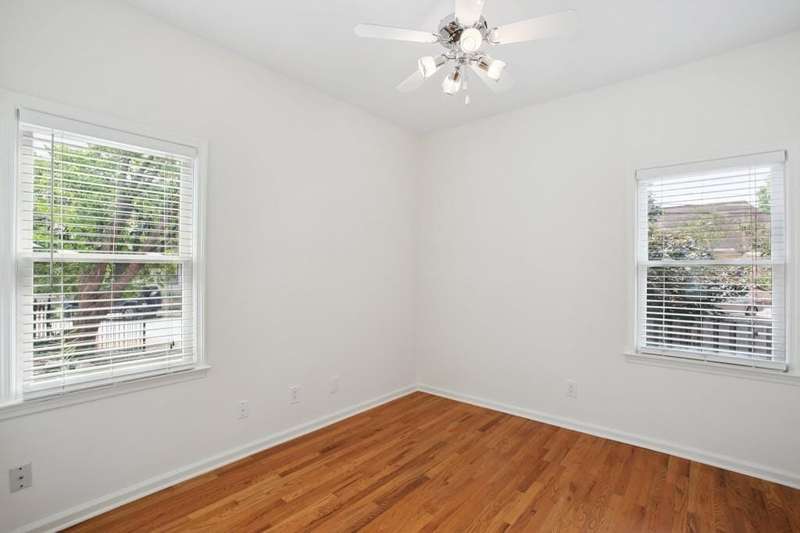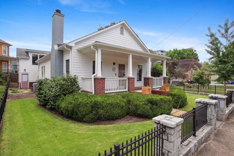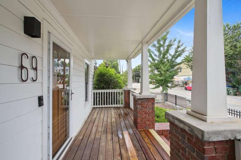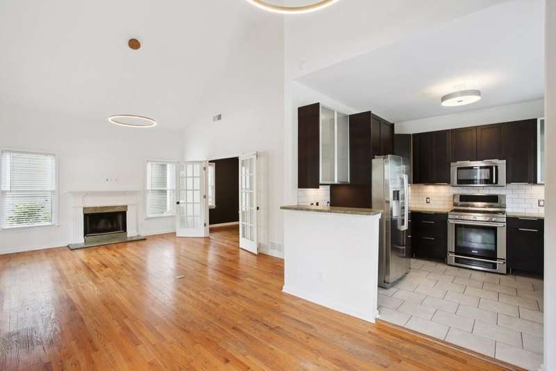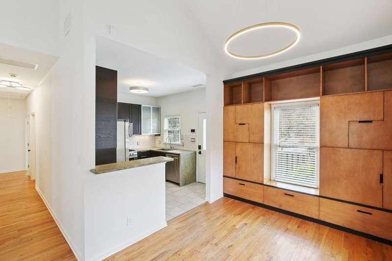 Welcome to this beautifully updated home combining charm, comfort, and modern sophistication. Featuring 3 bedrooms and 2 bathrooms (with the third bedroom currently serving as a home office), this residence offers an ideal floorplan with soaring vaulted ceilings in the living and dining rooms that create an open, airy ambiance. The living room boasts a cozy gas fireplace, while the dining area is enhanced with sleek, modern built-ins that provide both style and function. Gleaming hardwood floors run throughout, leading you to the renovated kitchen, complete with Bosch and Electrolux stainless steel appliances, granite countertops, and under-cabinet lighting. Retreat to the spa-like primary suite featuring a luxurious, stepless walk-in frameless glass shower with dual showerheads and elegant floor-to-ceiling tile. The hall bath impresses with new tilework and a modern bidet. Elfa closet systems from The Container Store add custom storage solutions throughout the home. Additional highlights include a dedicated laundry area with full-size washer and dryer, a welcoming covered front porch perfect for morning coffee, and a secure, black wrought iron and granite perimeter fence. The beautifully landscaped side courtyard is a private oasis, complete with crab orchard pavers, slate chips, galvanized steel and copper-wrapped planters, and a natural gas grill - perfect for entertaining or relaxing in peace.