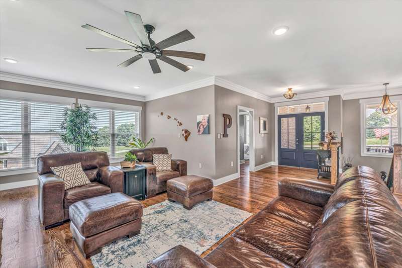 Custom- Built Single Owner, Like-New 5 BR, 4.5 BA Home situated on 1.23 Acres in Meador View which is conveniently located to Smith Mountain Lake, Roanoke and Rocky Mount. No HOA. Enjoy Beautiful Sunrise, Sunset and Mountain Views while sitting on your composite deck in front of the Gas Log Fireplace. Gas Line Hook ups for Grill on Deck and Patio, Large Fenced in Yard, Stamped Concrete Patio and Spacious 3 Car Garage. Kitchen offers High End Stainless Frigidaire Appliances, Large Island, large Walk-In Pantry & Granite Countertops with Quartz Backsplash. Upstairs offers Bedroom, Full Bath and Bonus Area that could easily be finished for additional living space. Basement would be great for an In-law Suite.