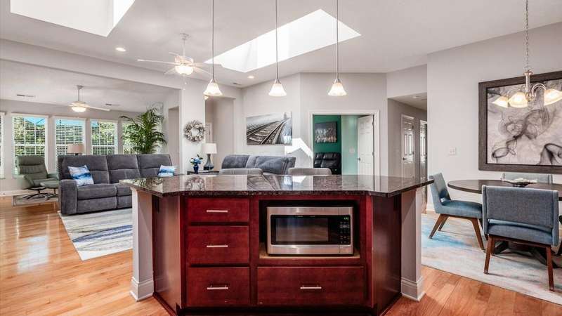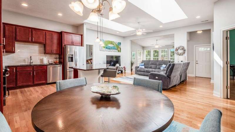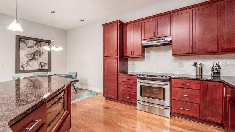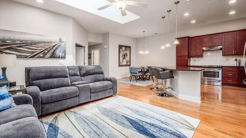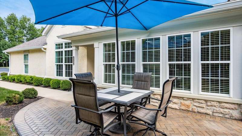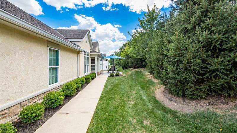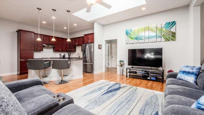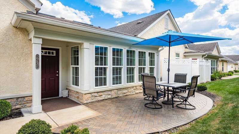 Stunning 1,800 sq. ft. ranch condo in desirable Eastwood Villas! This open-concept home offers a spacious Great Room with soaring 10' ceilings, a gourmet kitchen with granite countertops, stainless steel appliances, island cabinetry, and gleaming hardwood floors throughout. Enjoy natural light in the inviting Sun Room, work comfortably from the private den/study, and retreat to the luxury owner's suite with a roll-in 5' shower and generous walk-in closet. Outdoor living is enhanced by a custom paver patio, perfect for relaxing or entertaining.Designed with comfort and accessibility in mind, this ADA-friendly property features no-step entry, 36' doorways throughout, and a barrier-free owner's bath. Ideally located just minutes from I-270, Mt. Carmel Hospital, the airport, and Easton Town Center. A rare find combining convenience, style, and functionality!