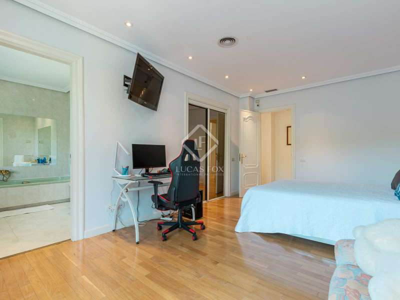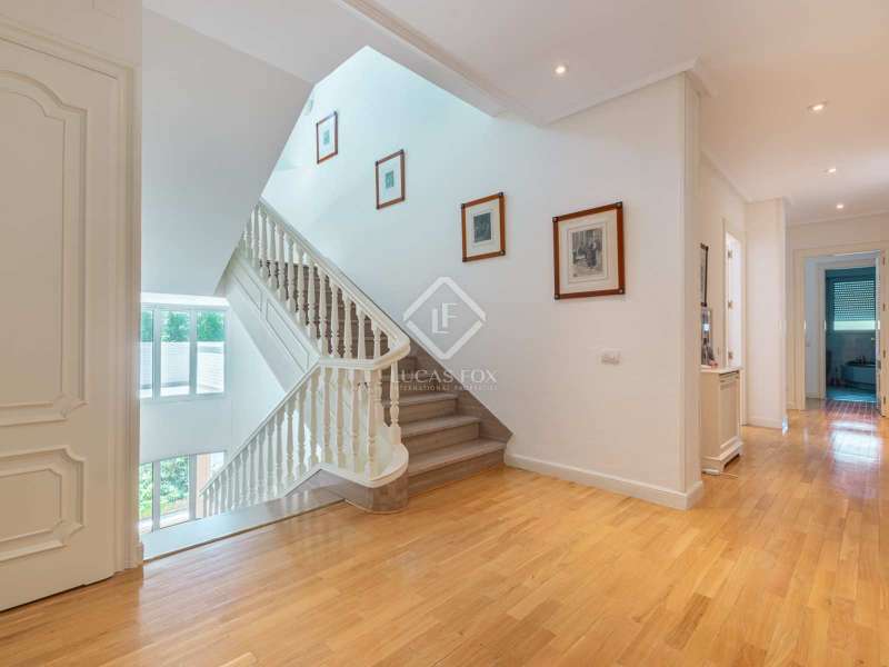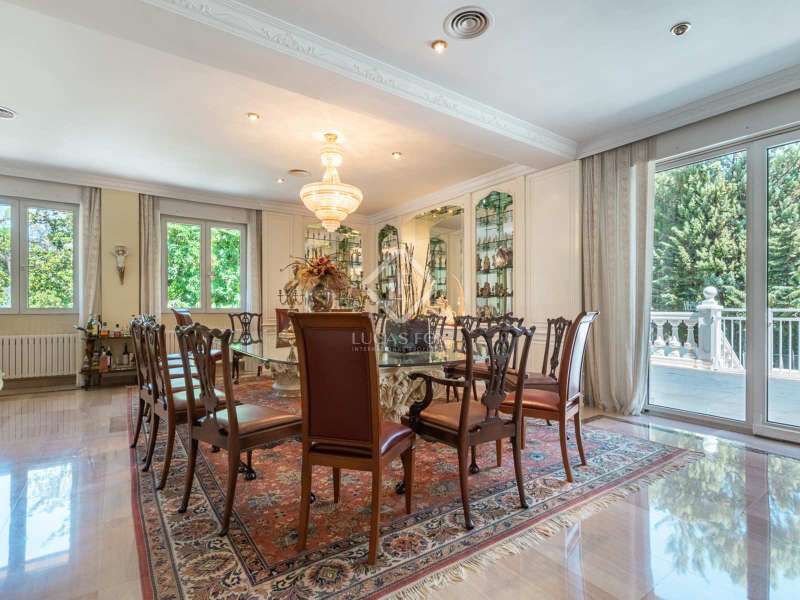 Lucas Fox is pleased to present this impressive and spacious three-story mansion with loft with spacious bedrooms and high ceilings, separate guest area, games room, indoor and exterior pool. This spectacular period mansion with a perimeter terrace on the main floor is unique, with an elegant and traditional interior perfect for a large family with a total of five bedrooms. From the garden, we access the main floor of the house by a staircase. We find a cozy entrance hall that leads to a spacious reception with stately stairs that lead to the upper floor . On the ground floor there is an exquisite guest living room and the main living room area: an open area with different rooms and excellent natural lighting by taking advantage of the entire south façade of the house. On this same floor we find the kitchen, fully equipped, with pantry, laundry and ironing area and secondary service access . In a more secluded area, next to the lift, we find the guest bedroom , ideal for visitors or to accommodate one of the family members. The night area is distributed on the first floor. The main bedroom stands out for its dimensions and spaciousness, with a dressing room and full bathroom and access to a large terrace. We find on this same floor four spacious bedrooms, all with their private bathroom. All have been arranged to also have access to an exterior terrace space, ideal for outdoor activities or resting after a school day. In the attic and semi-basement floor we find the auxiliary spaces of the house. From a games area with a fireplace, to a storage room, as well as an indoor pool, office, service area and even a room with a fireplace where you can celebrate family gatherings of all kinds. Thanks to the rectangular layout of the garden and the plot, the space is used to the maximum. The indoor pool is attached to the house, with access from the gym, ideal for a pleasant bathroom before starting the day. The exterior also has a sentry box at the entrance for private security, a tennis court and a ball game area. For lovers of the outdoors, this house is a true paradise. The exterior porch with barbecue is perfect for social gatherings and the pool is perfect for cooling off on warm days. The changing rooms and toilets complement the experience. This house combines luxury with comfort and offers an elegant and homey style. A villa with large interior and exterior spaces, surrounded by nature and in a privileged location. Contact Lucas Fox by email or phone to arrange a viewing and see the mansion with your own eyes. We are available 7 days a week to adapt to the needs of our clients. You can also visit our recently opened Lucas Fox Properties Lounge at Avenida de Europa 38, Pozuelo, where we can learn more about your needs and help you find your perfect home or investment.