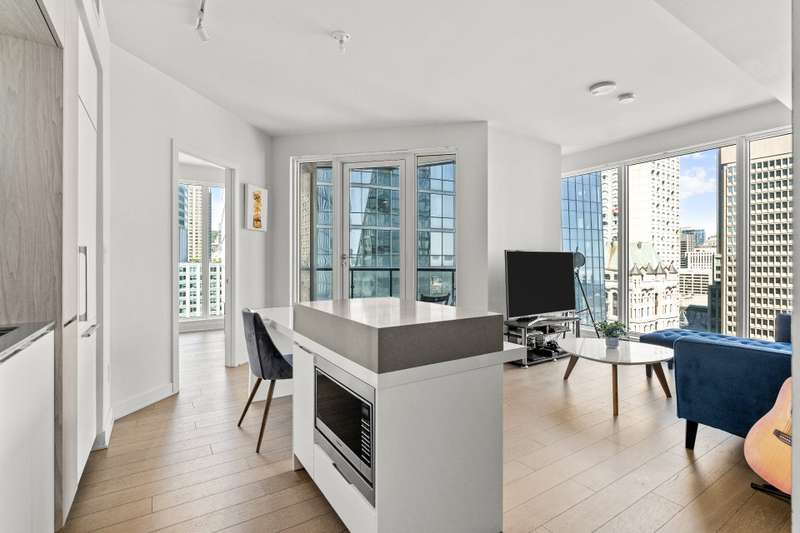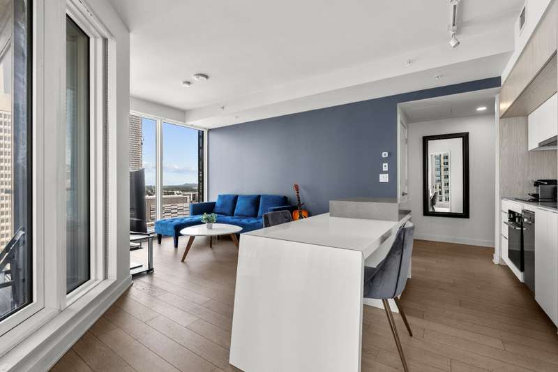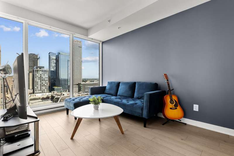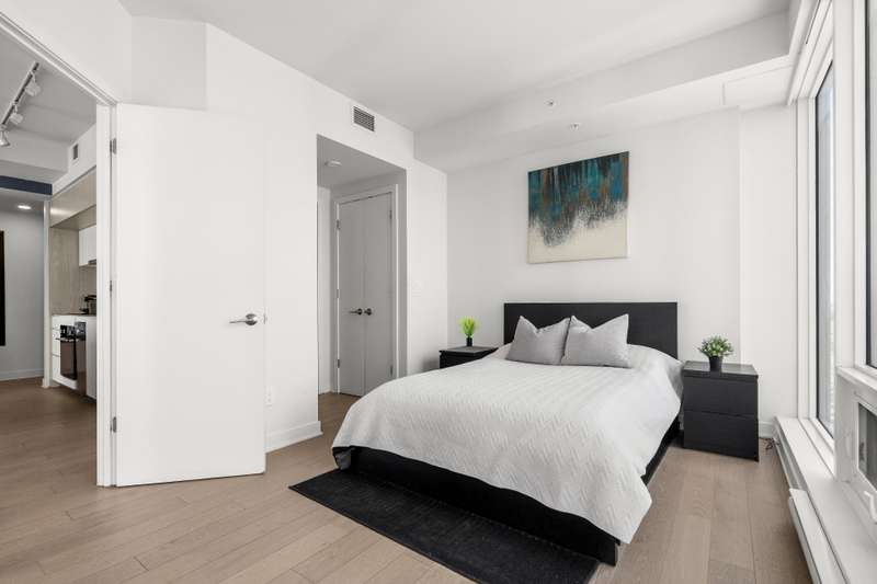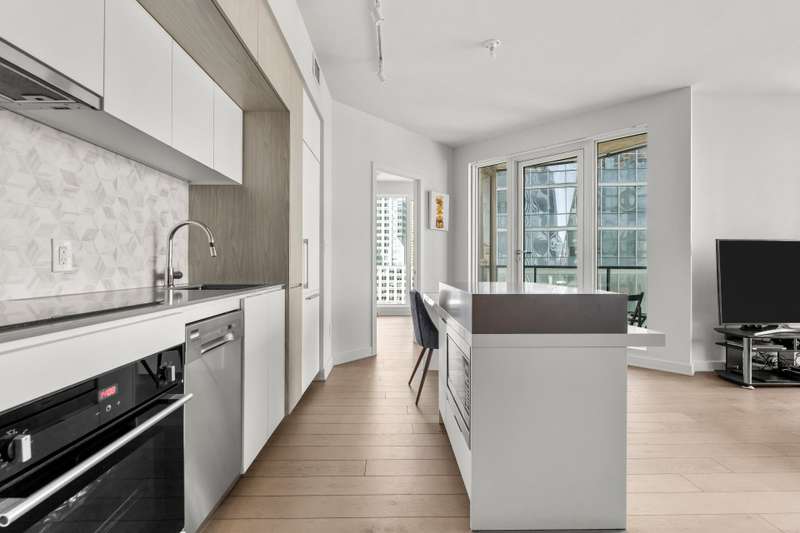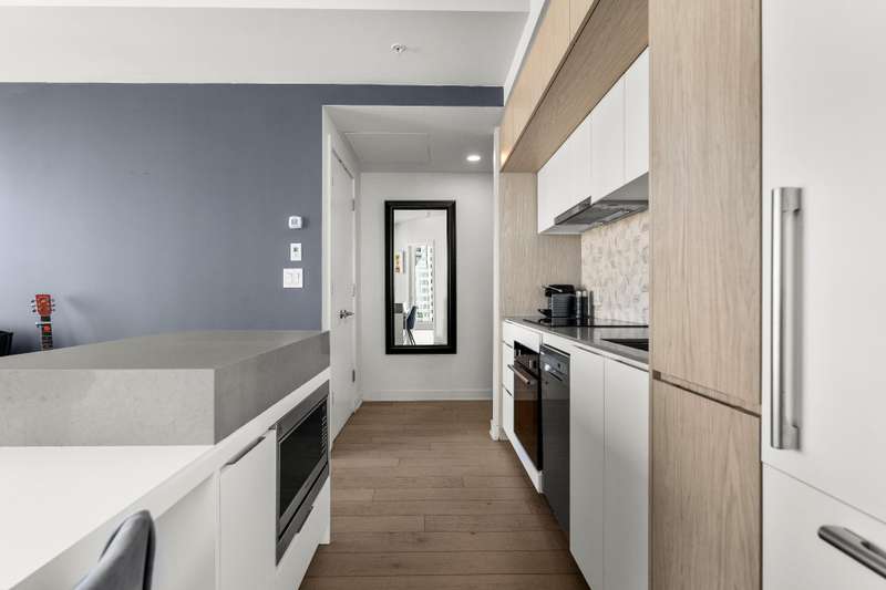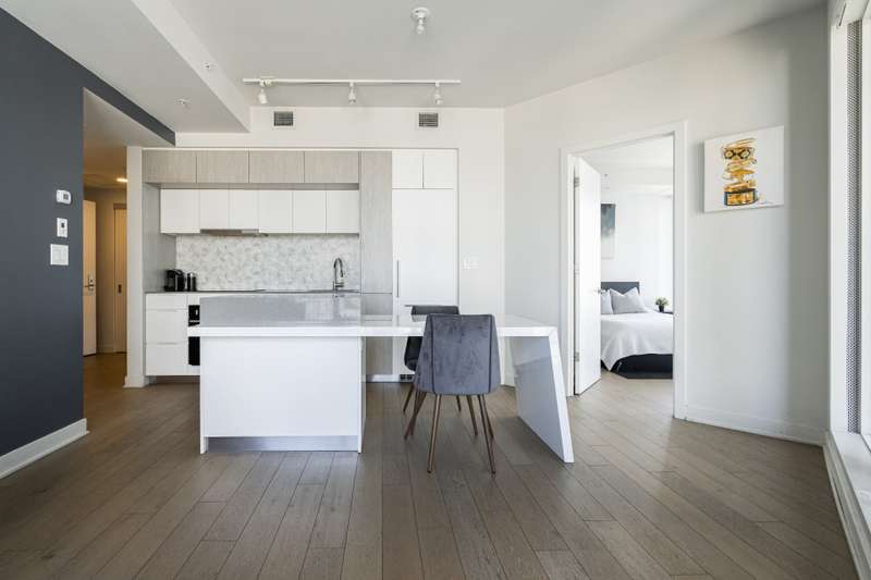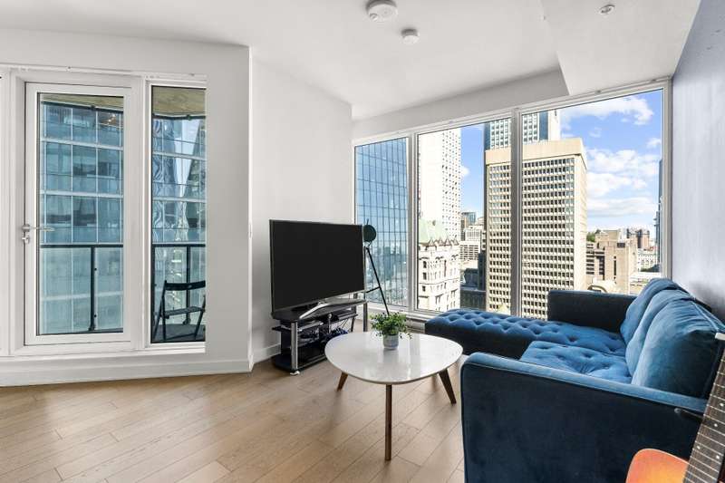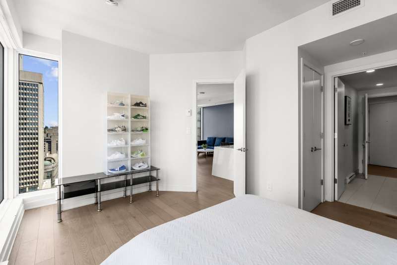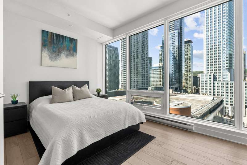 This show-stopping 22nd-floor corner unit boasts floor-to-ceiling windows, flooded with abundant sunlight and offering breathtaking, unobstructed city views. Enjoy the convenience of direct indoor access to the Bell Center for concerts and hockey games, the subway, and Montreal's underground city. This residence features an en suite bathroom, quartz countetops and private balcony for relaxing above the skyline. Includes an indoor garage space. Perfectly blending prestige, comfort, and location, this property offers the ultimate urban lifestyle experience. A world of unparalleled elegance and luxury awaits you at Tour des Canadiens Phase 2.
