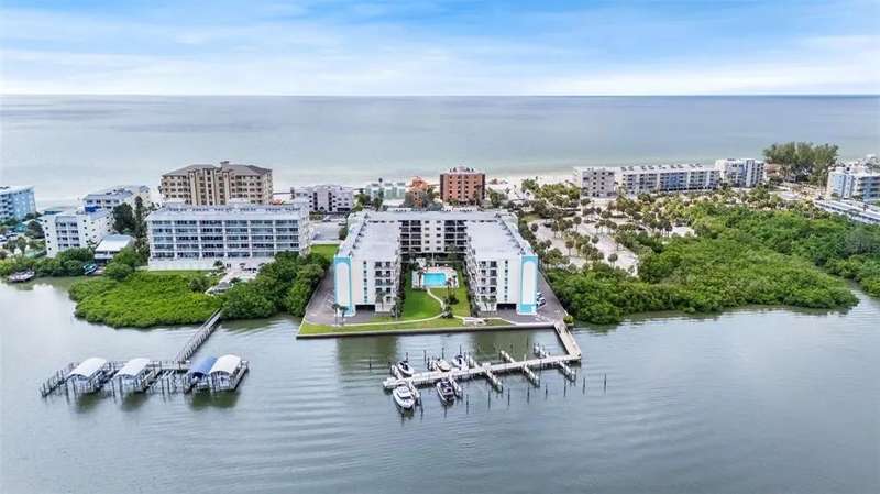 Waterfront two-bedroom, two-bath condo available in the Golden Shores Complex on Indian Shores. This unit features 1,320 square feet of living space, covered parking, and an oversized corner balcony with Gulf views and direct access from the master bedroom. The Golden Shores Complex offers exceptional amenities, including nearly 300 feet of Intracoastal waterfront, boat docks (available on a first-come, first-served basis), a large courtyard with a heated pool and spa, a clubhouse, fishing areas, and various waterfront lounging spots perfect for sunbathing and enjoying dolphin sightings and boat parades. The complex is also conveniently located directly across the street from the beach, and within walking distance to local restaurants, shopping, and nightlife. Additional features of this unit include an under-building parking space (#30) and additional storage located on the third floor, behind the elevator. The association is well-managed with full reserves, an on-site manager, and a low monthly maintenance fee of $770, with no assessments in the last year or coming up. The 30-day minimum rental policy makes this condo suitable as a full-time residence, a family beach getaway, or a part-time condominium with rental income potential. Located approximately 25 minutes to St Pete Clearwater Airport and 35 to Tampa International. This unit is priced based on the interior updates that will be necessary for the new Buyer.