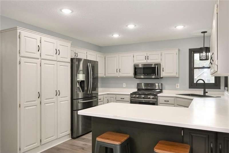 Spectacular home with flexible layout. Fabulous main level layout, this home features a formal living room, kitchen and dining, large family room and a bedroom with nearby three-quarter bath. This main level has flexible areas that could be used for an office, playroom, media room… make it your own! The rare main level bedroom is great for guests or a tucked away office, or anyone that simply prefers to use a bedroom on the main level with an adjacent bathroom. Three sweet bedrooms up and a shared full bathroom. The upper level primary has a private ensuite and big walk in closet. The lower level includes a rec room, great as media room, and another bedroom. Huge 3 car garage, newer concrete driveway. Newer composite deck overlooks a gorgeous backyard, shaded by a sturdy oak tree. Well-loved, well-cared for home in great condition.