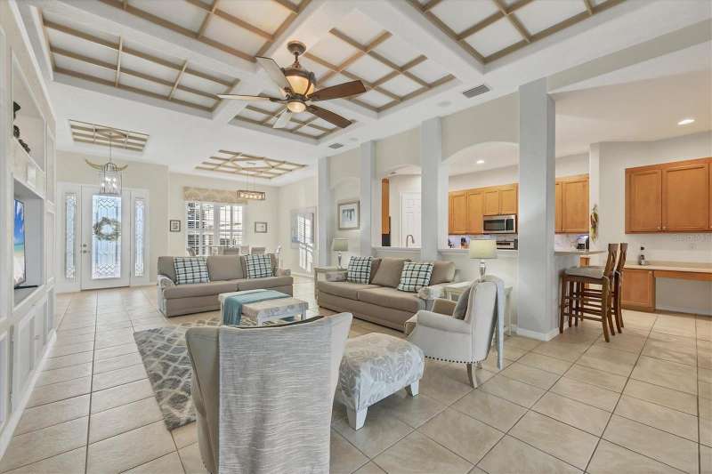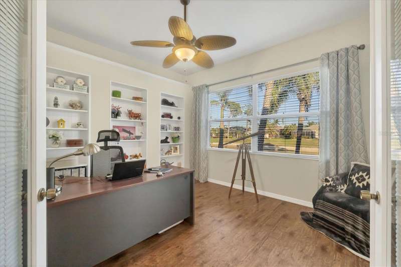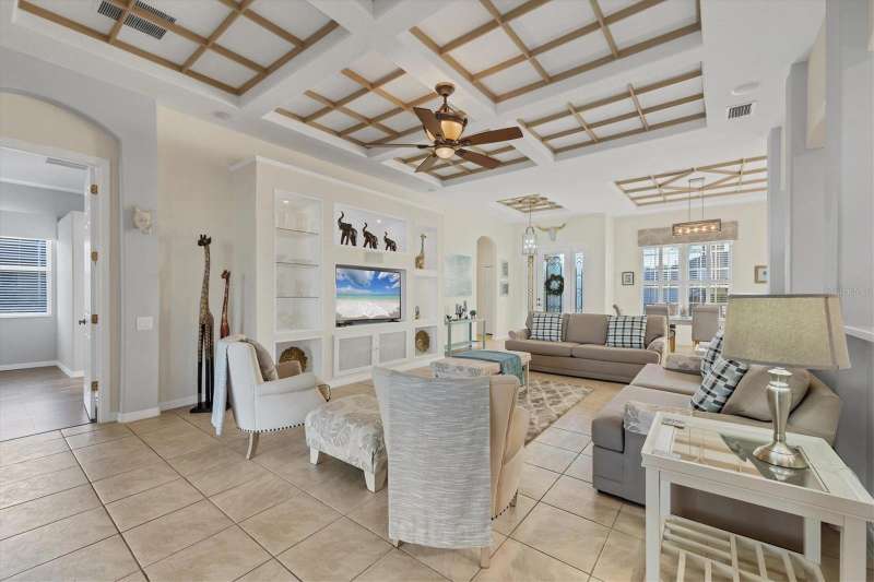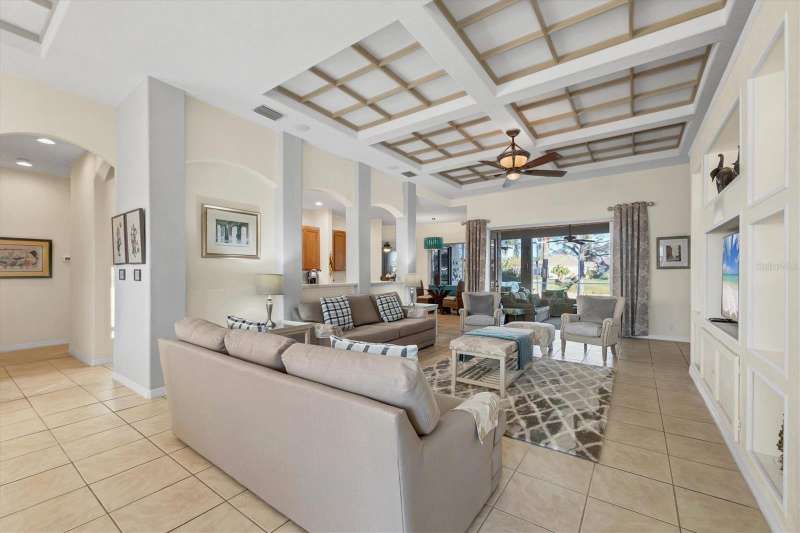 Stunning 3 Bedroom, 3 Bath Home with Den/Office in Bobcat Trail – Turnkey and Ready to Impress! Welcome to this magnificent 3-bedroom, 3-bathroom residence with a den/office, nestled in the prestigious Bobcat Trail community. Offering 2,511 square feet of exceptional living space, this home seamlessly blends luxury, comfort, and elegance, creating the ideal setting for refined living and entertaining. .As you step through the foyer, you’ll be captivated by the open and airy feel, highlighted by expansive sliders and an aquarium window showcasing breathtaking views of the pool and tranquil pond beyond. The majestic coffered ceilings and built-in entertainment center with shelving add a touch of sophistication. The space is further enhanced by 8’ interior doors, amplifying the sense of spaciousness. The oversized primary bedroom is a private retreat, featuring two walk-in closets, a garden tub, separate shower, dual vanities, and a slider opening directly to the lanai and pool area—perfect for peaceful morning reflections or evening relaxation. The kitchen boasts 42” wood cabinets, solid surface countertops, a walk-in pantry, stainless steel appliances, a stylish tile backsplash, and cozy built-in seating in the café. The Lanai and Pool area offer a picturesque and private setting, ideal for hosting guests. Enjoy expansive covered patio space with a large stone counter, built-in wine cooler, and beverage fridge, all while taking in stunning views. You will benefit from an oversized two-car garage with an additional third car space, ensuring plenty of room for vehicles, storage, and hobbies. Turnkey Ready: This beautifully furnished home is being sold turnkey, allowing you to move in effortlessly and begin enjoying the Bobcat Trail lifestyle immediately. Recent Upgrades: Hurricane Shutters in the front and down both sides. Freshly repainted interior and exterior, maintaining a pristine and modern look, brand new roof and seamless gutters with downspouts installed in December 2024, Updated AC system replaced in 2022, ensuring comfort and efficiency year-round. Seller is also offering a $5000 credit at closing to go toward new countertops in bathrooms. Bobcat Trail is conveniently located so you will have easy access to I-75 and US-41, placing you close to top-notch medical care, fine dining, shopping, Gulf Coast beaches, and the spring training facilities of the Rays and Braves. Bobcat Trail Amenities Include pickleball and tennis courts for active living, a heated community pool perfect for relaxation, a fitness center to maintain a healthy lifestyle, a community center hosting various events and gatherings. Note: The surrounding golf course is privately owned and is currently closed. Schedule Your Private Showing Today! This remarkable residence is more than just a home; it's a lifestyle statement. Don’t miss your opportunity to own this stunning property in the heart of Bobcat Trail. Contact us today to schedule a private tour and experience firsthand the luxury, comfort, and convenience this home offers.