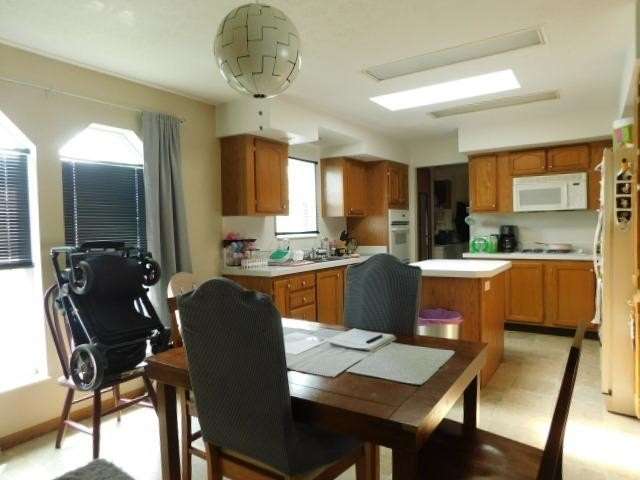 Roomy mobile home with gas fireplace, multiple skylites, 2024 new dish & microwave. Kitchen w/preparation island. 3 large bedrooms, 2 full baths, WIC. Large 2-car garage. Washer/dryer included.
