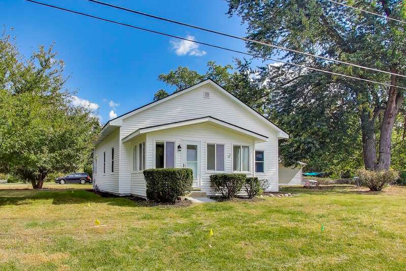 Just minutes from the beach and the Michigan border, this updated two-bedroom home sits on a large lot with plenty of outdoor space. Inside features include new flooring, modern finishes, and an open layout that feels bright and inviting. An enclosed porch offers a cozy year-round retreat. Detached garage included. Perfect for full-time living, a weekend escape, or an investment near the lake.