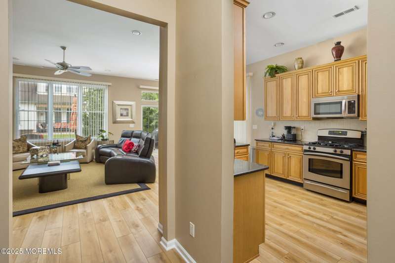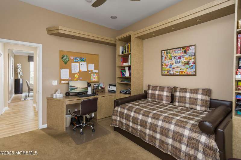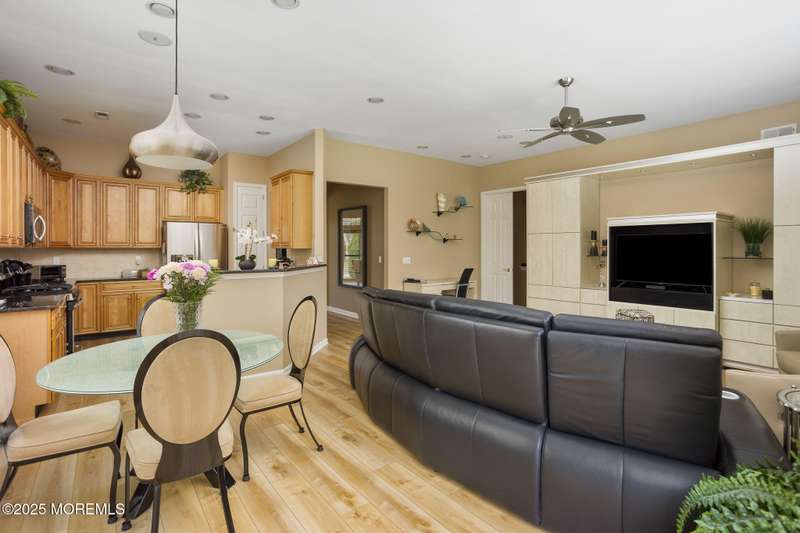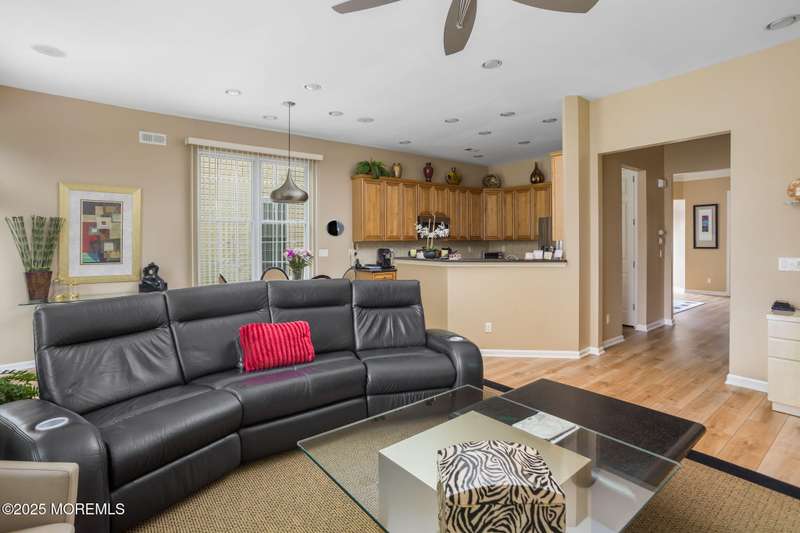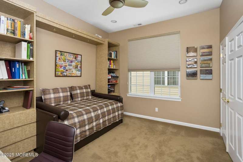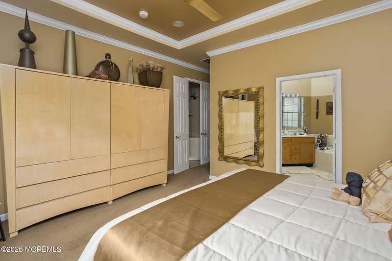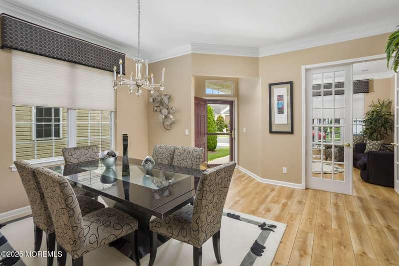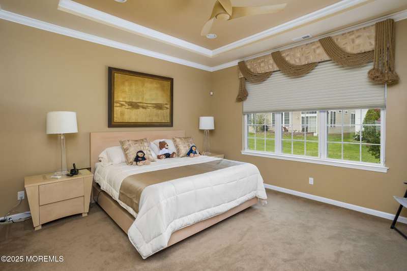 Welcome to 25 Copernicus Ct in the sought-after Riviera at East Windsor, a premier 55+ resort-style community by Toll Brothers. This one-owner home offers 2 spacious bedrooms, 2 full baths, plus a versatile bonus room perfect for an office, den, or guest space. Step inside to find high ceilings, crown molding in select rooms, neutral paint, and windows that flood the home with natural light. The bright, airy layout is enhanced with luxury LVT flooring, custom window coverings, and upgraded light fixtures and ceiling fans throughout. Bedrooms feature plush carpeting, while the kitchen boasts stainless steel appliances, granite countertops, and newer appliances for a modern touch. The primary suite includes a spa-like ensuite with dual sinks, and the two-car garage offers additional storage. Home can be furnished or delivered vacant. Step out to a peaceful, beautifully landscaped backyard patio perfect for relaxing and entertaining guest. Enjoy the benefits of the clubhouse and its many amenities: indoor and outdoor pools, a fitness center, tennis courts, shuffleboard, and a scenic fitness trail over a mile long that winds throughout the community. The location is unbeatable just minutes to express buses on Route 130 and Princeton Junction station, offering fast and convenient train service to New York City. Don't miss your chance to live in this vibrant community and enjoy the lifestyle you deserve!