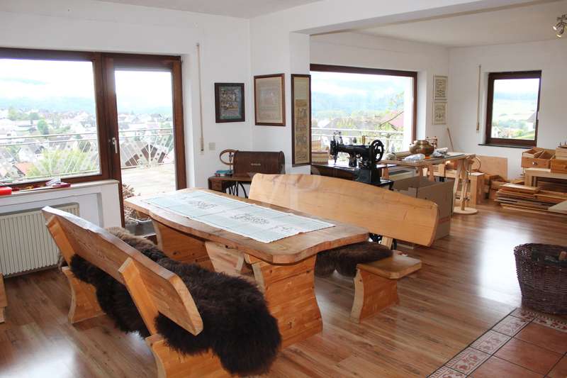 The spacious apartment with a living area of approx. 190 m² offers enough space for a family or two separate units over 2 floors. The property is in a quiet location on the outskirts of the village and boasts an unobstructed view of the surrounding countryside. The house was built in 1977, but an extension was added in the basement in 2005 to create additional living space & a huge terrace with views. The property is in a well-kept condition and was built in solid construction. Heating is provided by both oil-fired central heating and a cozy wood-burning stove in the living area. The apartment has a kitchen & bathroom on the first floor and offers the possibility of creating a granny apartment in the basement. Here there are 4 further rooms and a WC with washbasin; the connections for a separate bathroom (incl. connections for washing machine and dryer) and a separate kitchen are already available in one of the 4 rooms. A large garden area invites you to linger outdoors and offers a variety of uses. The large terrace, which is accessible from both the living room and the bedroom, is particularly noteworthy. Here you can enjoy the idyllic surroundings and spend relaxing hours outdoors. The property impresses with its wide range of possible uses and high recreational value, which is provided by its quiet location on the outskirts of the village. Overall, the property presents itself as an attractive offer for buyers who are looking for a spacious apartment with plenty of room and a beautiful garden. The property is in good condition and its central yet quiet location offers a pleasant living ambience. The property is available by arrangement and it is possible to adapt the furnishings according to your own wishes.