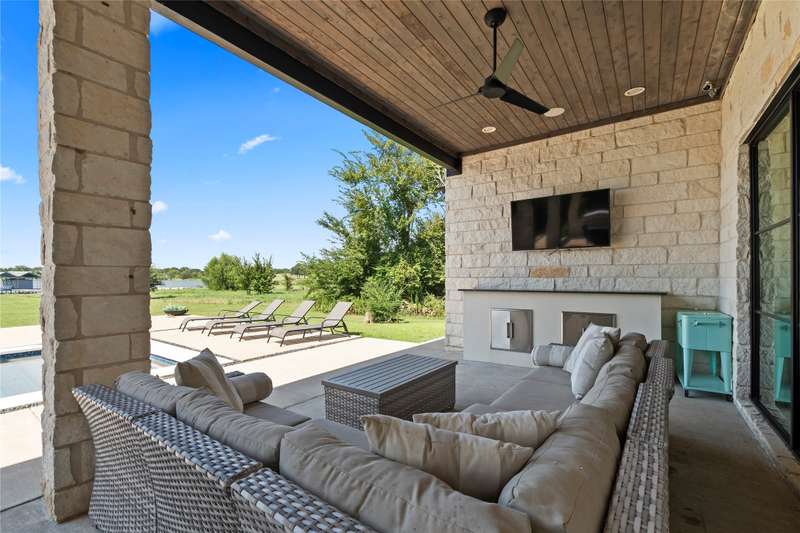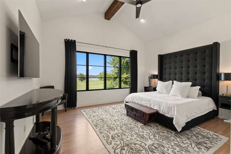 Nestled on 3.46 acres with 131 feet of open water front, this extraordinary estate is one of only 6 estate size homesites in the exclusive gated 505 Ranch just 45 minutes from Downtown Dallas. This premier community with 56 waterfront home sites lends lakefront luxury with ranch-style living across 505 pristine acres on the shores of Cedar Creek Lake. A long, wooded driveway leads to a striking modern lake home featuring open-concept great room flooded with natural light through tall windows that frame panoramic water views. A stone fireplace, built-ins, wood floors, and wood-beamed ceilings add warmth and character, while the state-of-the-art kitchen is a chefs dream, featuring high-end appliances, a gas range, double ovens, and an expansive island with wine fridge and ice maker. The main level hosts two lake-view primary suites with baths along with a spacious utility room and a built-in workspace. Upstairs, the bonus room invites relaxation and entertainment with a large sectional, pool table, and wet bar equipped with a sink, fridge, and microwave. Two custom-designed bunk rooms, both with ensuite baths and water views, provide ample space for guests. Step outside to a large covered patio featuring a mounted TV, ceiling heaters, and a Coyote grill. Stunning pool with both heater and chiller, a stone firepit, and a lush lawn leads to private boathouse with composite decking, covered seating, two jet ski lifts, a boat lift and party deck. As part of 505 Ranch, residents enjoy exclusive access to over 400 acres of unmatched amenities including an equestrian center, guest cottages, polo field, pickleball courts, skeet range, hiking and ATV trails, stocked fishing ponds, a clubhouse, pool, sandy beach, and full-time ranch staff with concierge services. Whether youre seeking a serene retreat or an active lifestyle, this rare offering delivers the best of both worlds.