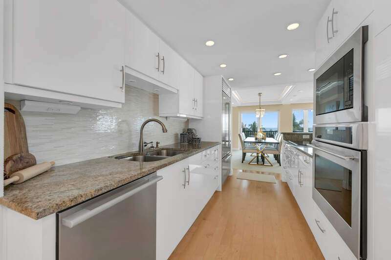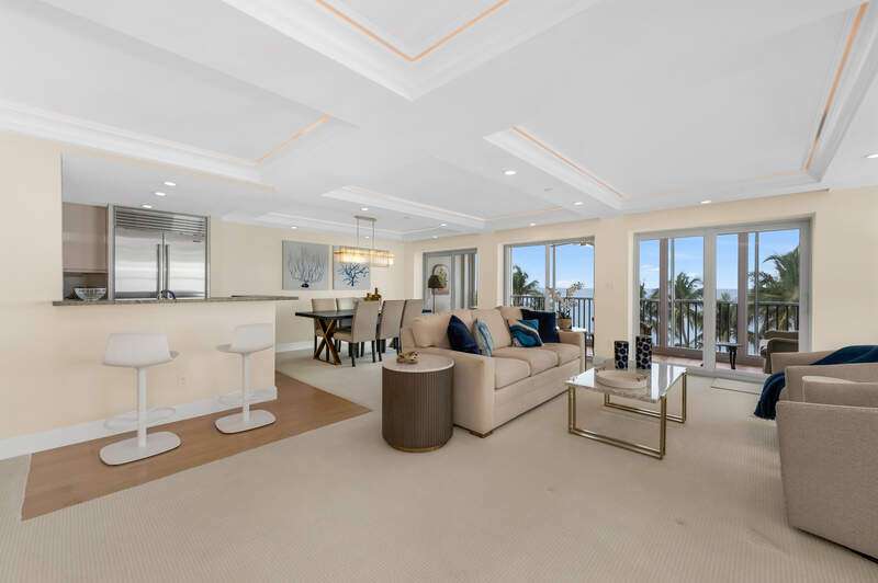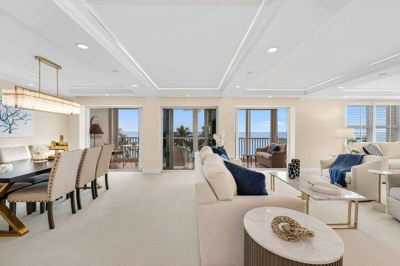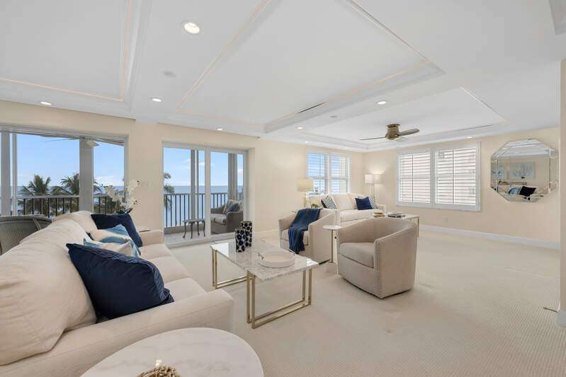 Impressive 4th-floor end unit in the desirable Martinique Club featuring 3 bedrooms, 3 bathrooms, and 2,064 sq/ft of beachfront living. The updated kitchen offers newer appliances and opens seamlessly to the living space-ideal for entertaining. Enjoy stunning Gulf views from this private, well-located condo. The third bedroom has been opened to expand the living area, enhancing the open-concept layout. Additional highlights include updated lighting, custom interior shutters, and an expansive lanai with hurricane-rated sliders. This unit may also be purchased with the adjacent unit (#404), creating a rare opportunity for a 5-bedroom, 5-bath beachfront retreat. Martinique Club offers an exclusive lifestyle with only 35 residences, private beach access, a beachfront pool, cabana room, and a newly renovated lobby. Ideally located just steps from Venetian Village's upscale boutiques and dining, and a short drive to Waterside Shops, Artis-Naples, Mercato, and the iconic 5th Avenue South and 3rd Street South.