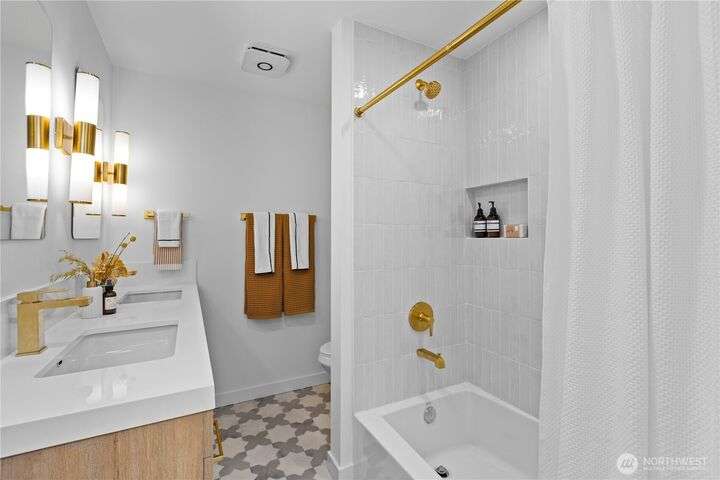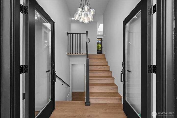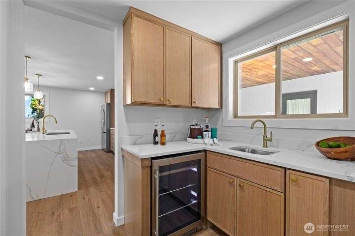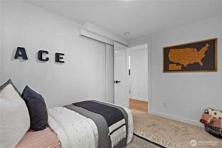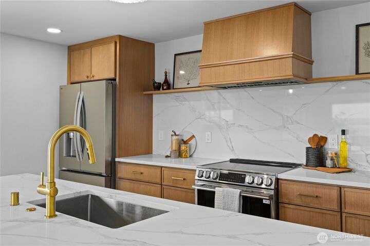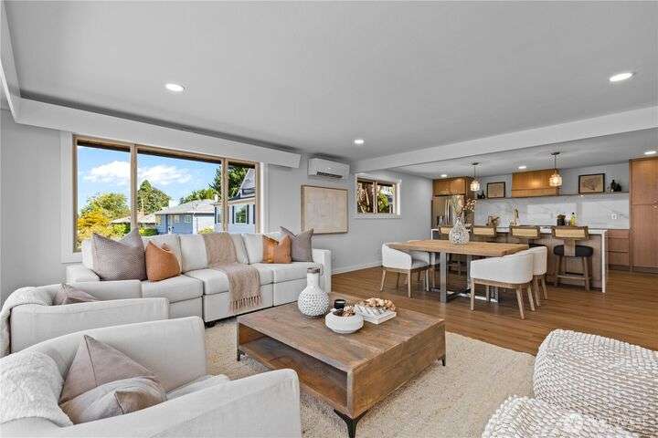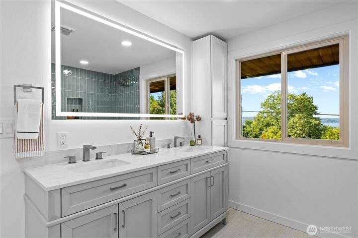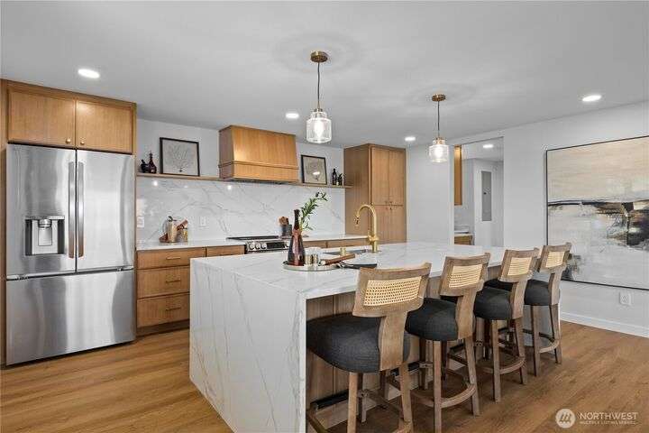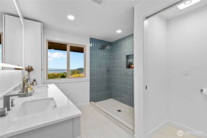 Stunning studs-out remodel in desirable Lower Kennydale! This 4 bed, 3 bath home with bonus & office lives like new. Gorgeous kitchen with waterfall island, custom cabinets, slab backsplash, walk-in pantry & beverage fridge. Great room showcases incredible views of Bellevue, Lake Washington & the Olympics. Primary suite offers spa-like bath, walk-in shower, dual sinks, views & huge walk in closet. Flexible layout offers one-level living option plus basement with oversized rec room, laundry room, office, 2 bedrooms & 3/4 bath. Two driveways, 26' deep hobby garage, oversized patio with water views & new privacy fence. Huge corner lot with DADU potential—this one truly has it all! New electrical panel, new furnace / AC, new windows, and more!