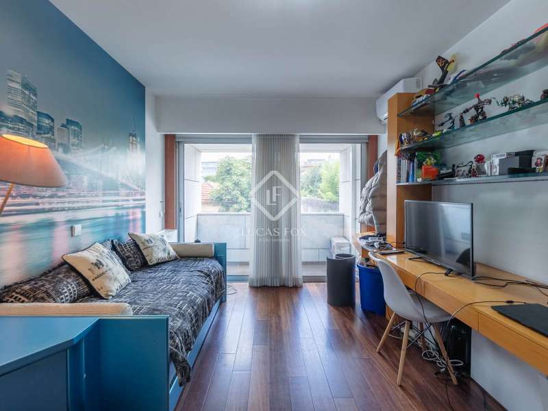 3-bedroom duplex apartment in excellent condition, with 235.00m2 of gross area, two balconies and two parking spaces, located next to Jardim de Serralves. The apartment is located in a contemporary building very close to Serralves Gardens and faces east/west, which gives it plenty of light, also provided by the large window openings. The apartment's social floor offers a shared bathroom, a living room with a west-facing balcony, a kitchen with two entrances, and a laundry room. The private floor has three spacious suites, one with an east-facing balcony and the others facing west, benefiting from a wide staircase access, as well as a large circulation area. The apartment also has two parking spaces located on the floor designated for car parking.