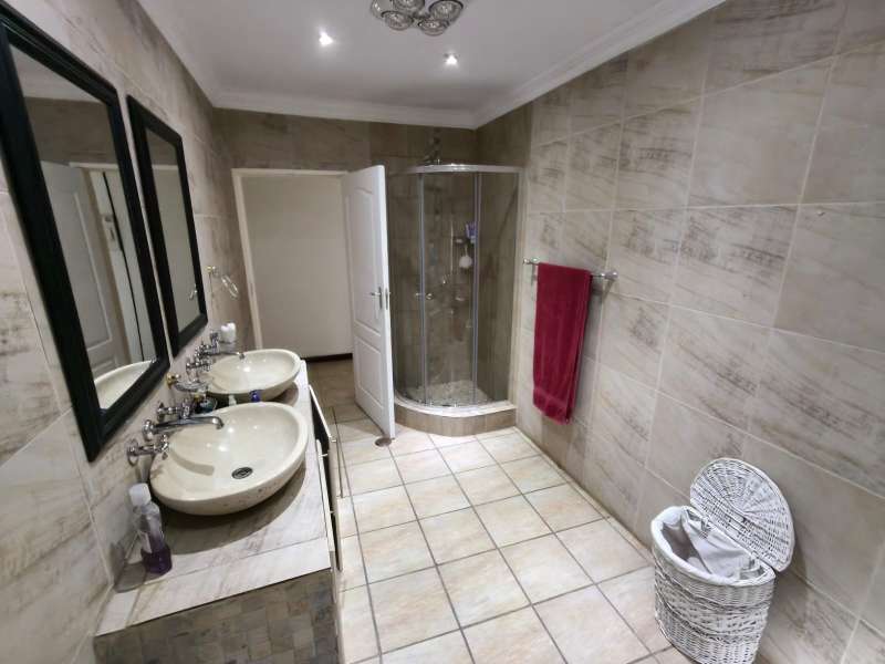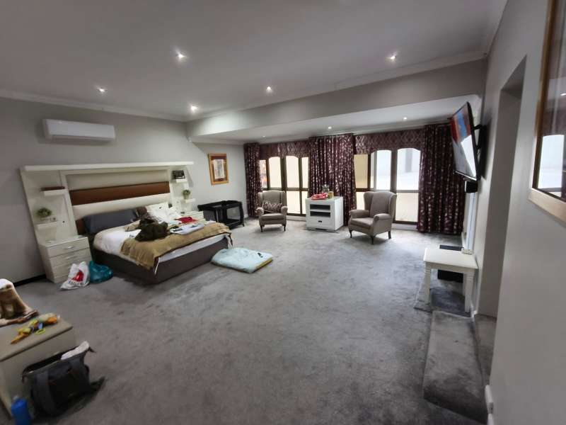 This stunning 3-bedroom home in Protea Park offers space, comfort, and luxury on a large 2322m² stand. Each bedroom has a walk-in closet, and there are 3 full modern bathrooms. Enjoy the cozy lounge, study, dining room, and a stylish kitchen with pantry. A separate outside laundry adds convenience. The property also includes a 1-bedroom flatlet with its own kitchen, bathroom, and lounge – perfect for guests or rental. Entertain with ease on the patio with built-in braai, relax in the lapa with a bar, wine cellar, and guest toilet, or stay fit in your own gym. There’s also a storeroom and back-up generator for peace of mind. Swim in the beautiful pool, and enjoy plenty of parking with 2 garages, 3 carports, and 2 entrances. The home is secure with electric fencing, alarm, and cameras. Two boreholes and 2 JoJo tanks ensure a steady water supply. Move-in ready and made to impress!